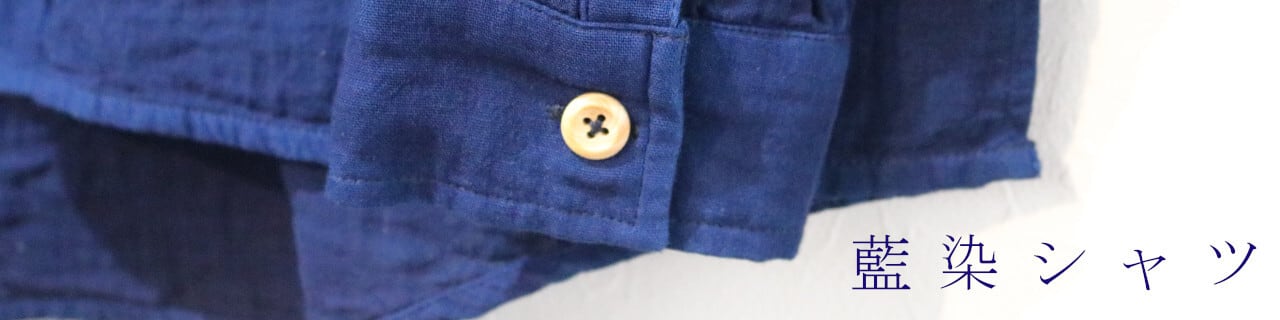 [折紙シャツ] 無地 金茶×藍染手織り 木香薔薇柄 久留米絣使用 池田絣工房