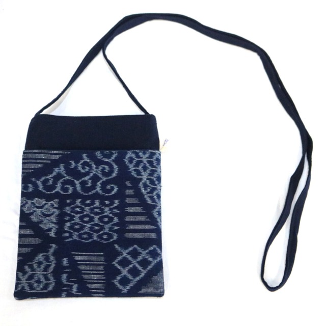[3ポケット サコッシュ※普通サイズ] 久留米絣 花散るステンドグラス柄×無地 紺 池田絣工房 ショルダーバック