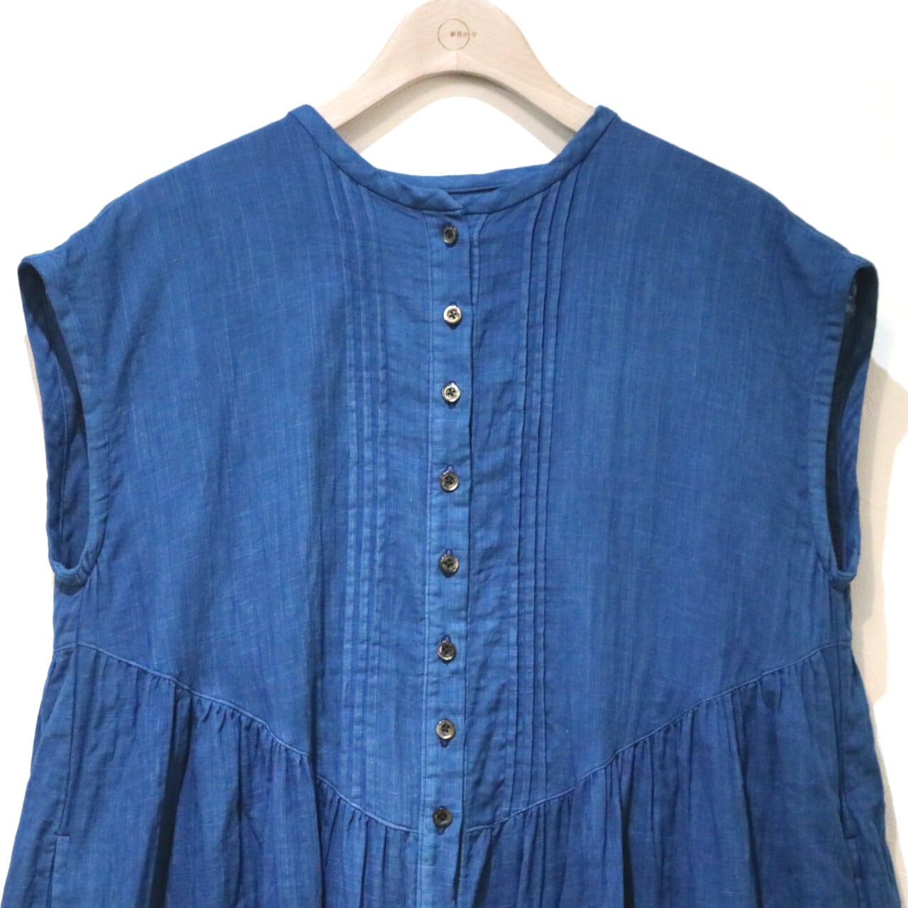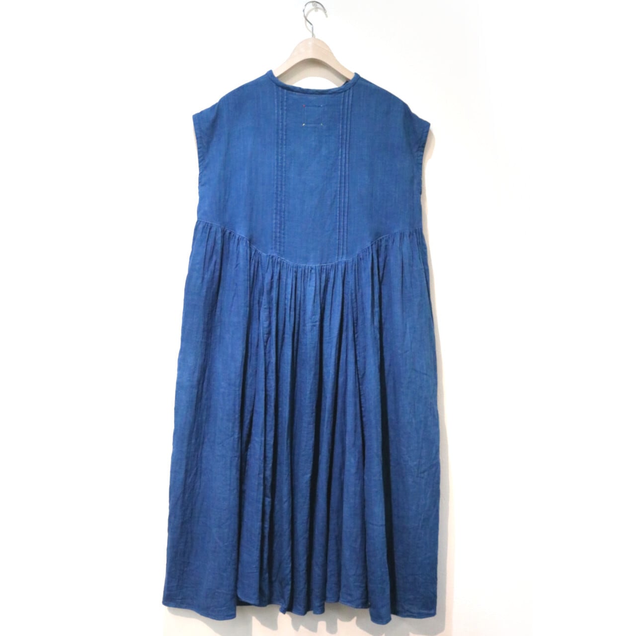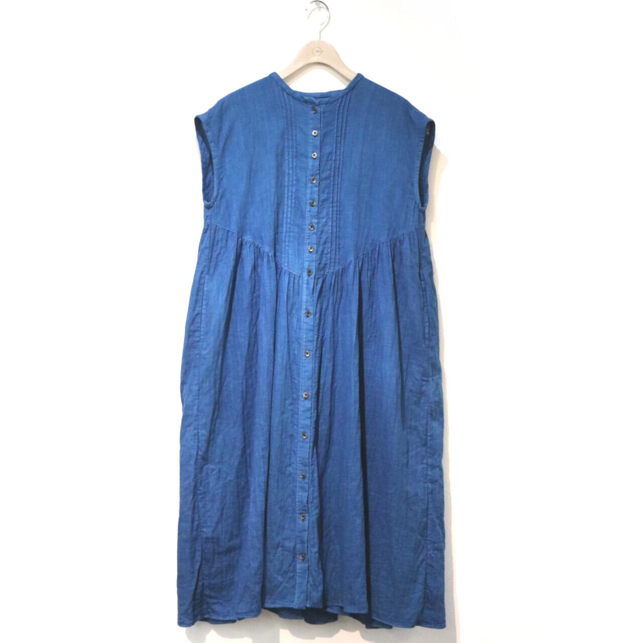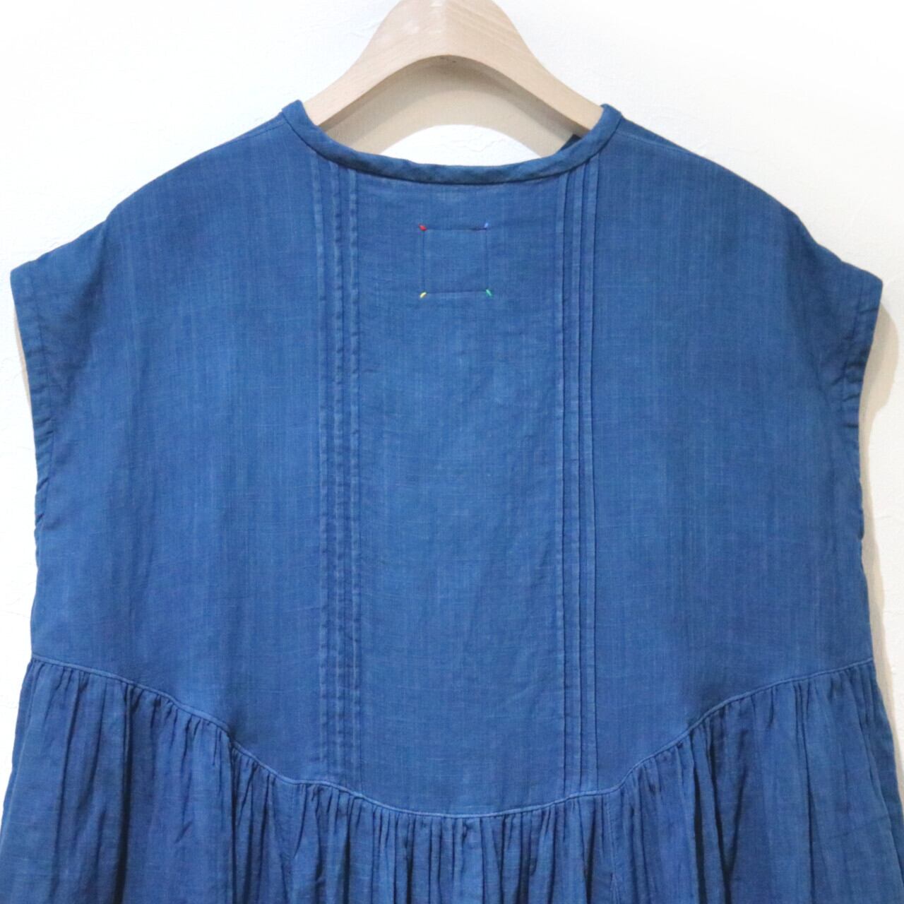 紺碧の手 [藍染ガーゼ そよ風フリルワンピース ノースリーブ(袖なし)] 天然藍染×国産ガーゼ ※職人手染め