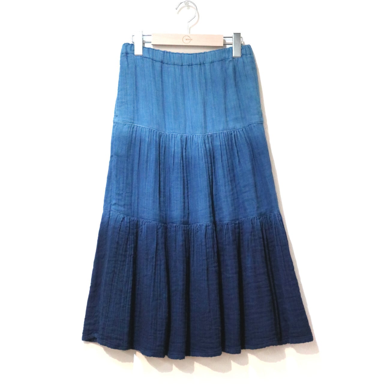 紺碧の手 [藍染ガーゼ ロングスカート 三段ギャザー] 天然藍染×国産ガーゼ ※職人手染め