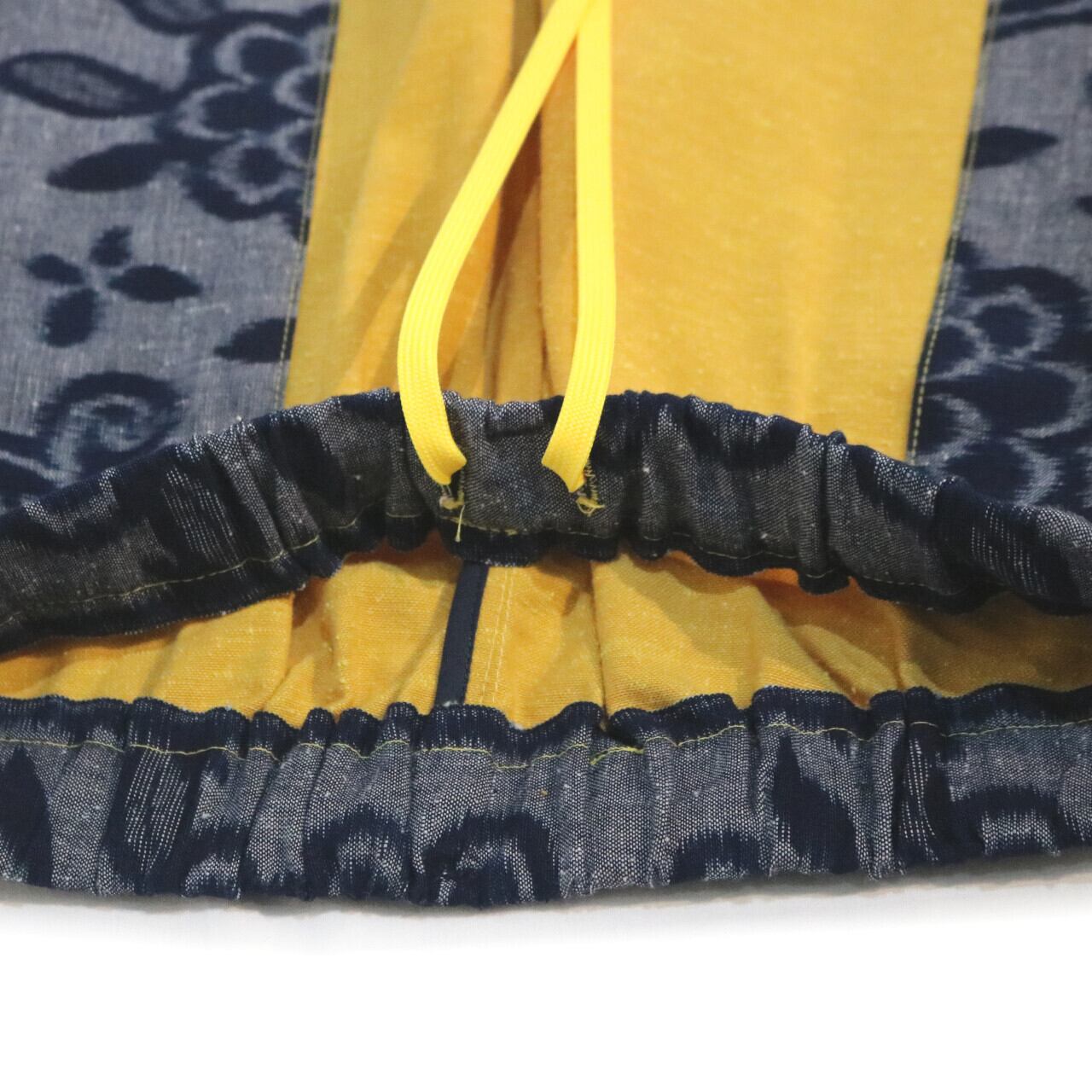 [ピクニックパンツ] 無地 イエロー×唐草牡丹柄 もんぺ風パンツ ※柄部分:藍染手織り久留米絣使用 池田絣工房
