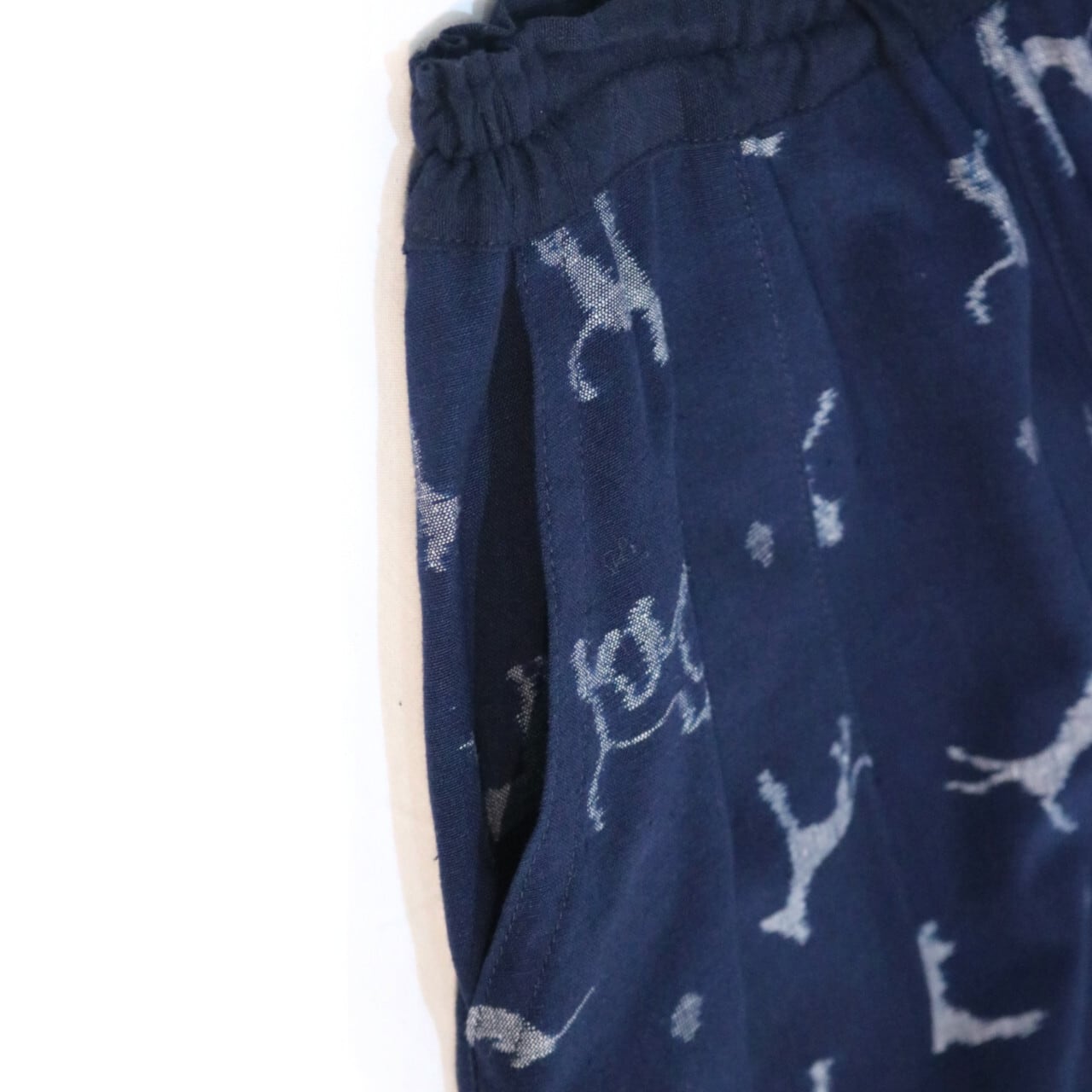 [ピクニックパンツ] 藍染手織り 犬柄 紺 もんぺ風パンツ ※総柄 久留米絣使用 池田絣工房