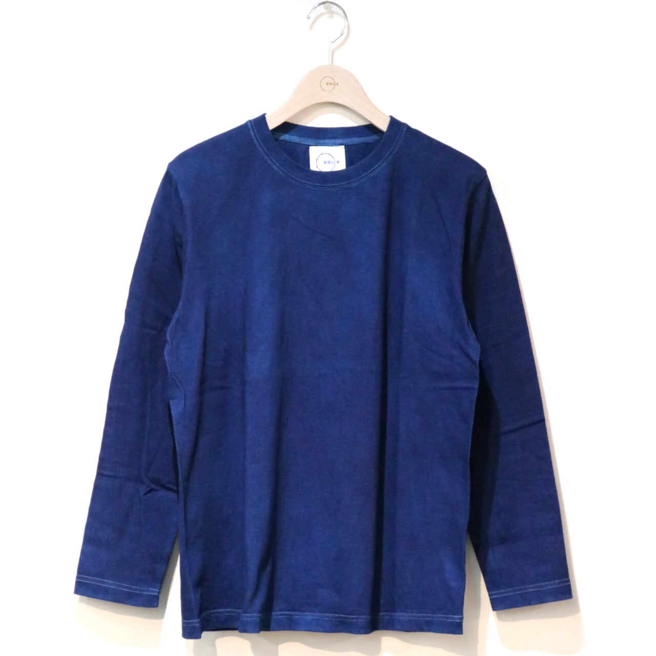 Mサイズ【限定品】紺碧の手 [天然藍染 ロングTシャツ] 長袖 絣ポケット後ろ ※職人手染め