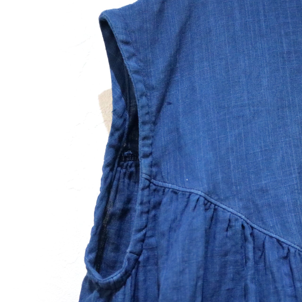 紺碧の手 [藍染ガーゼ そよ風フリルのシャツ ノースリーブ] 天然藍染×国産ガーゼ ※職人手染め
