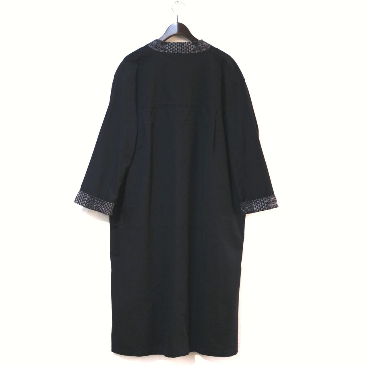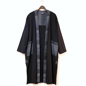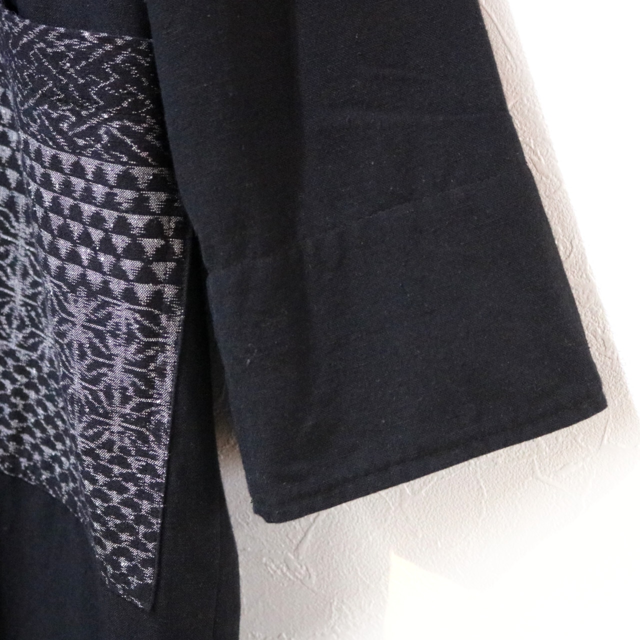 木綿の花 [かすりの羽織 ロング丈] 久留米絣 無地 黒×四段吉祥柄 手織り 池田絣工房