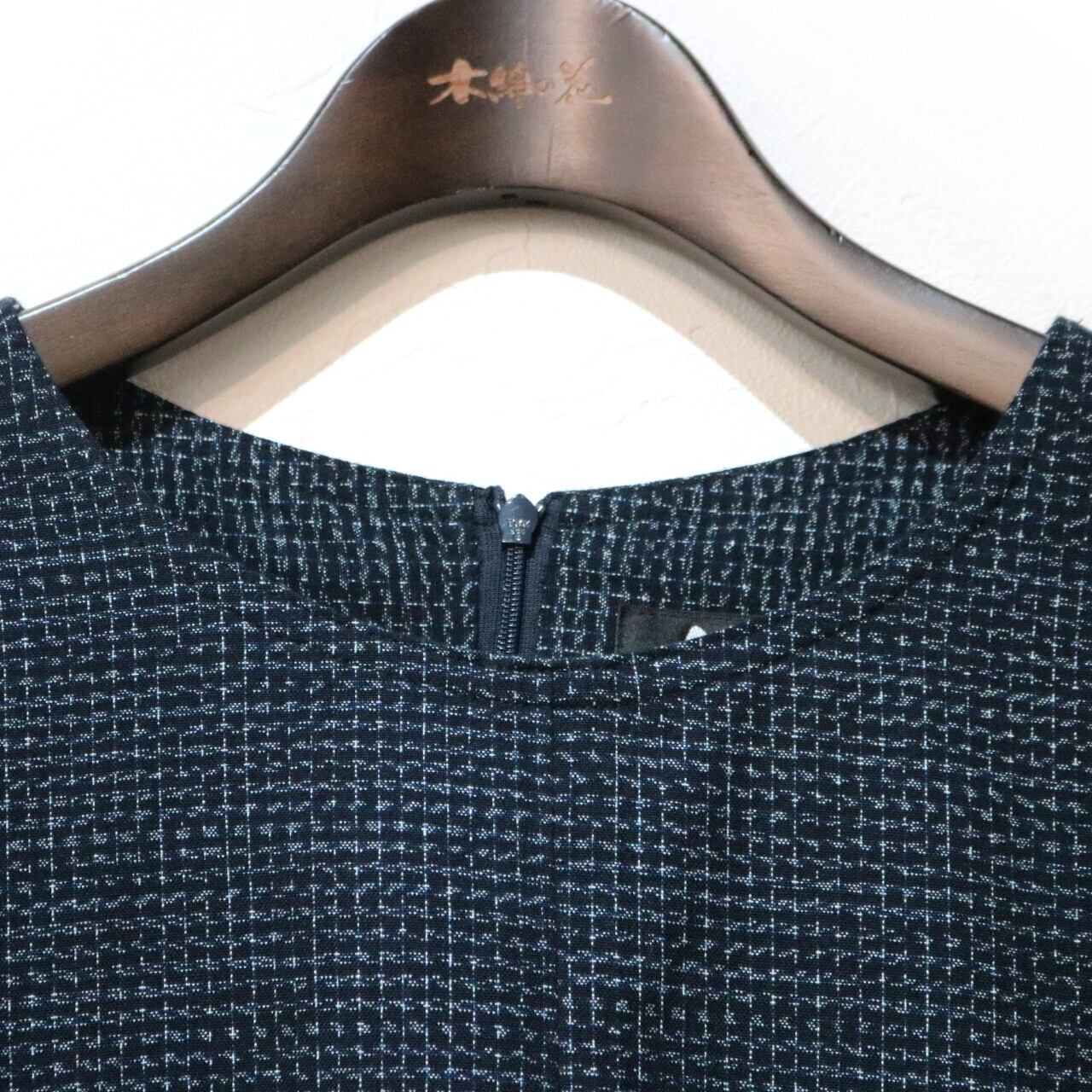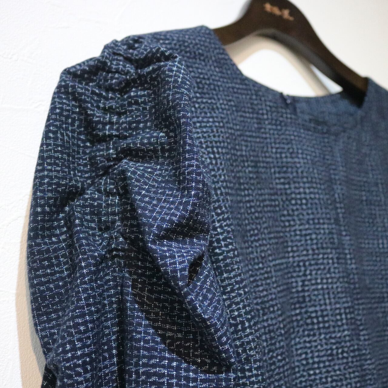 木綿の花 [パフスリーブ ワンピース 総手織り 切替え有] 藍染手織り 文人柄 久留米絣使用