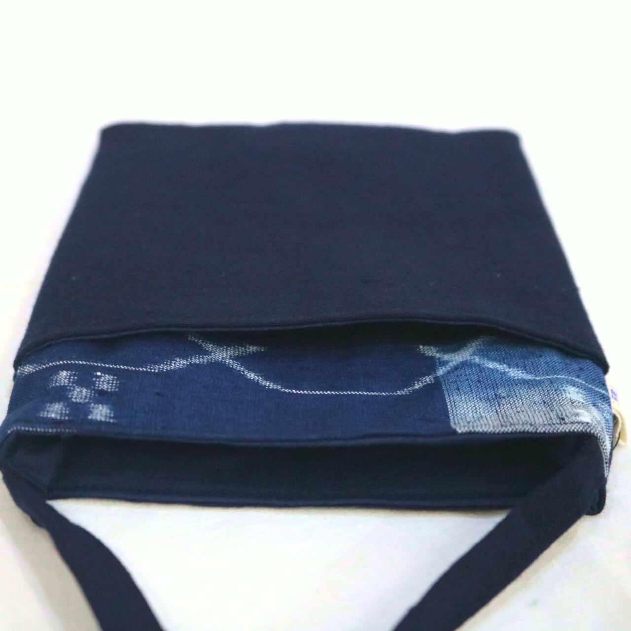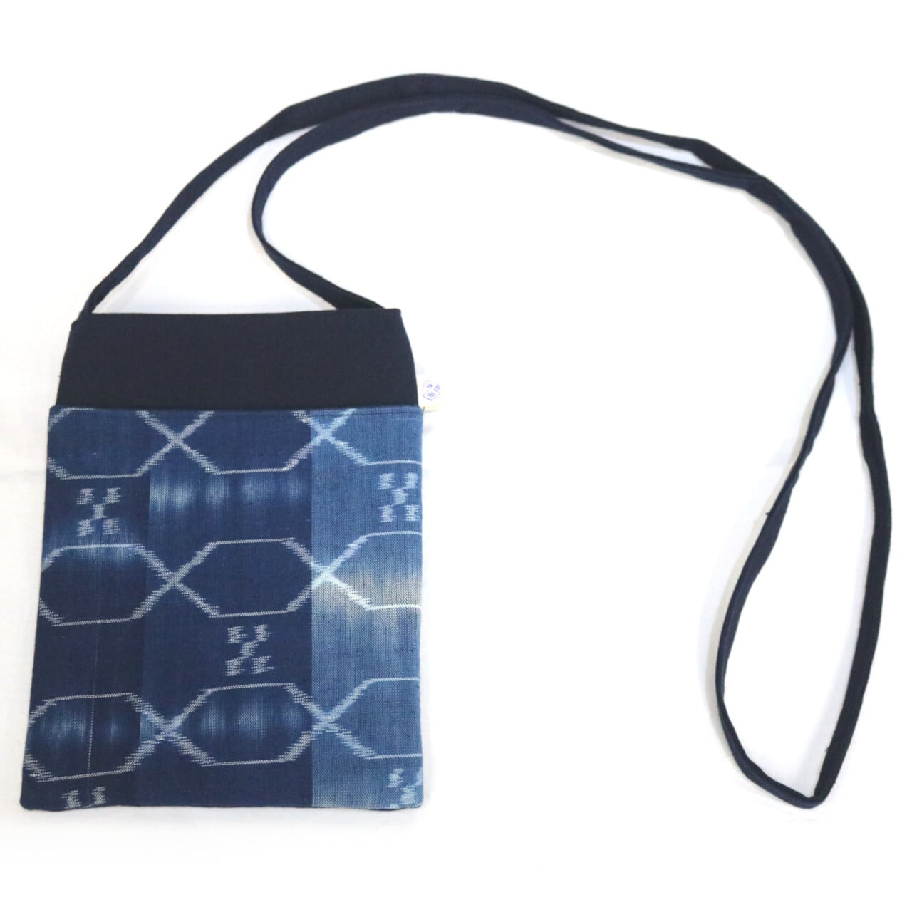 無地の久留米絣を使用した3ポケットのサコッシュ。