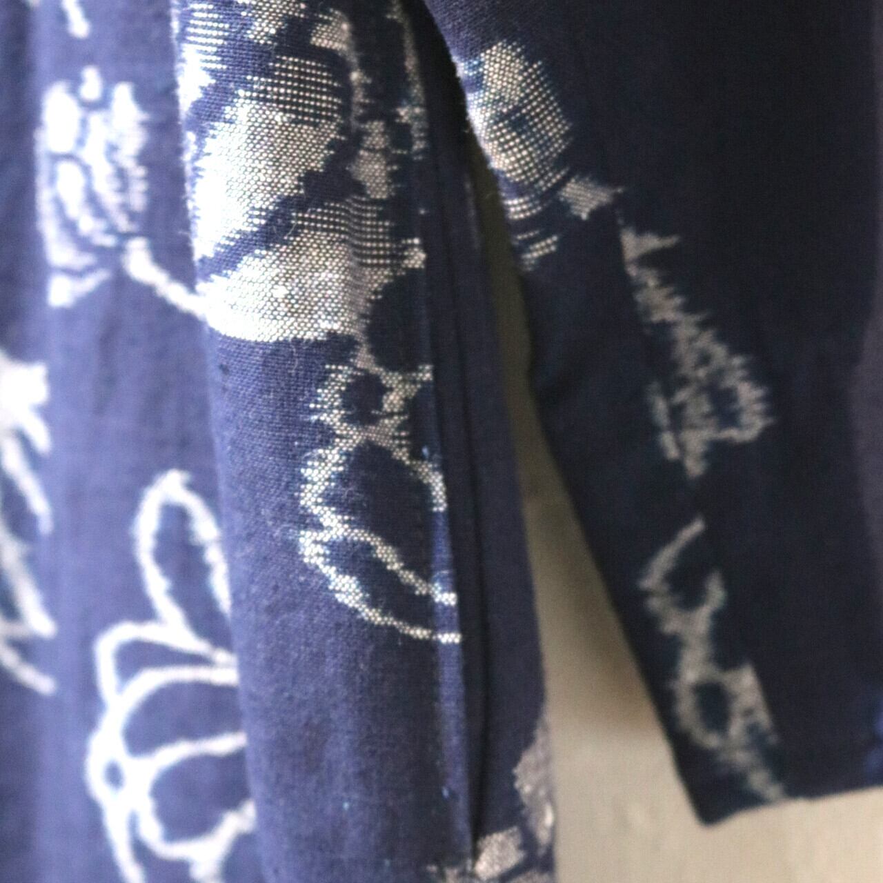 木綿の花 [マントコート 絵絣 総手織り] 藍染手織り 蓮華乱舞柄 久留米かすり 袖口2way・半裏仕立て