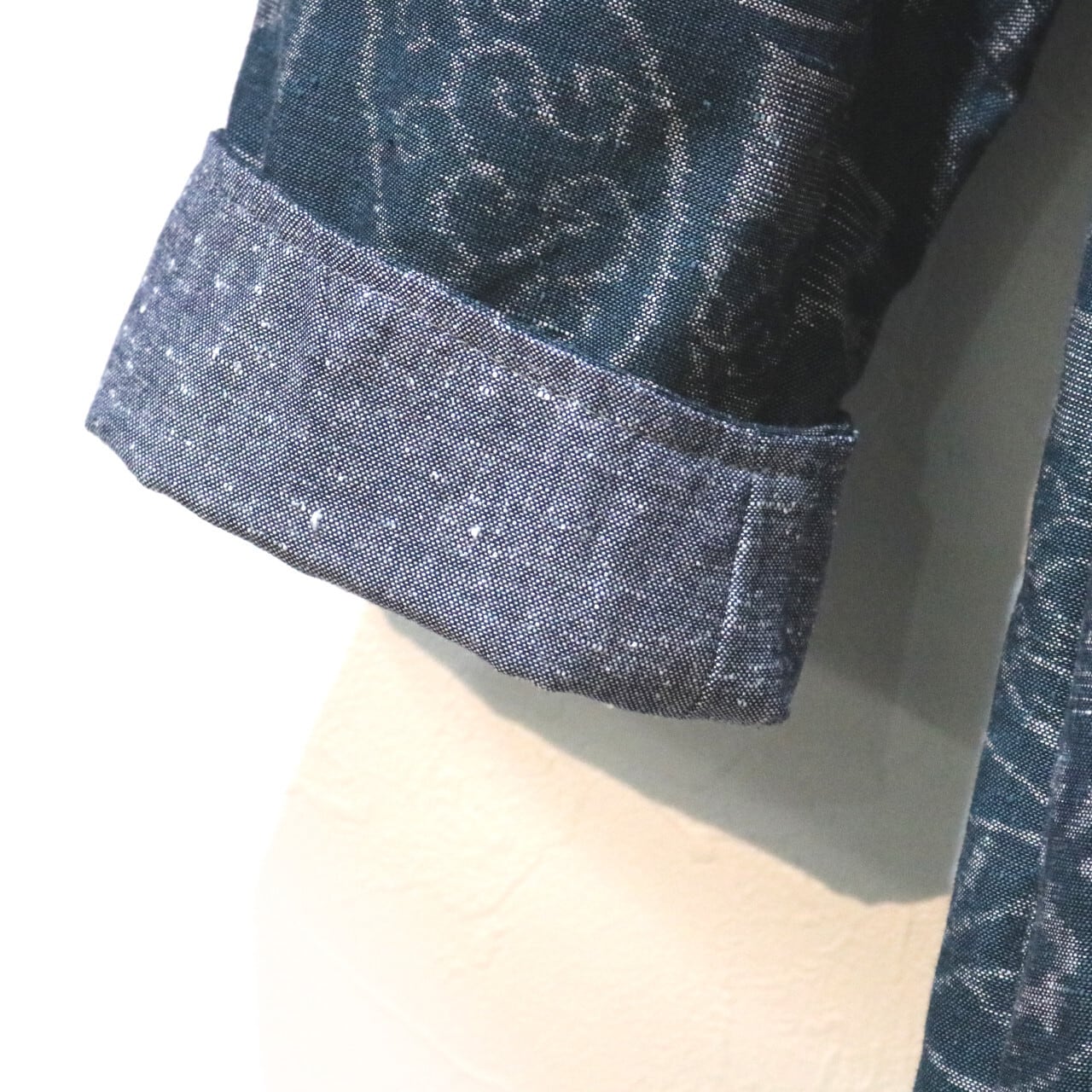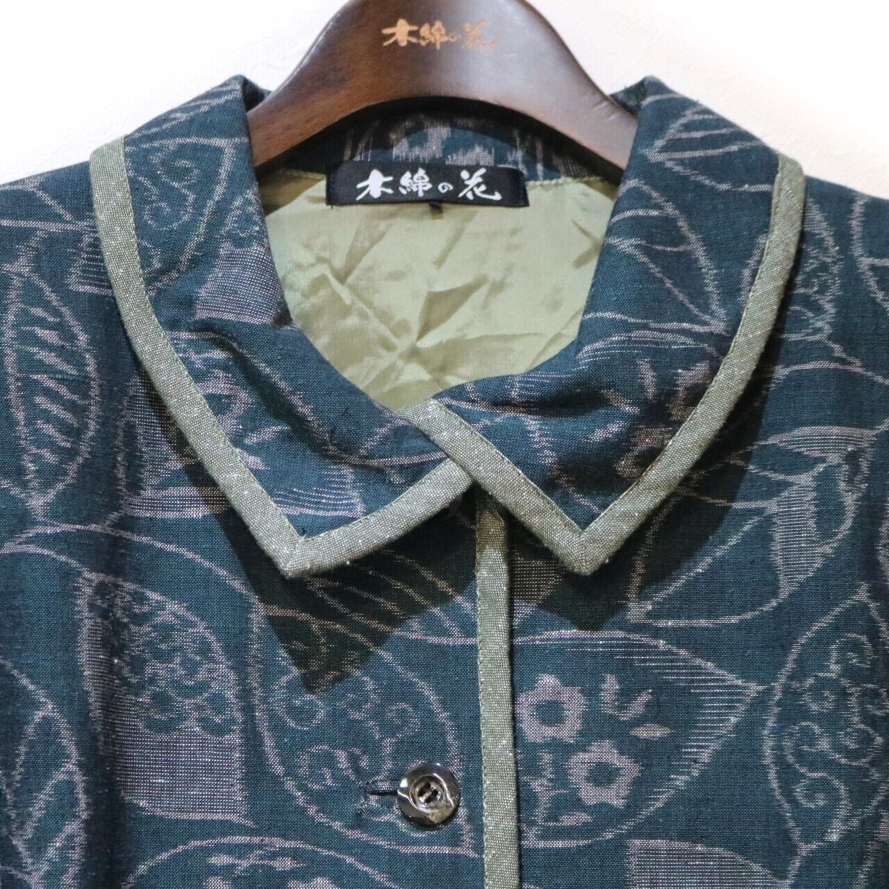 木綿の花 [マントコート 絵絣 総手織り] 藍染手織り リーフパレード柄 久留米かすり 袖口2way・半裏仕立て