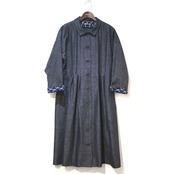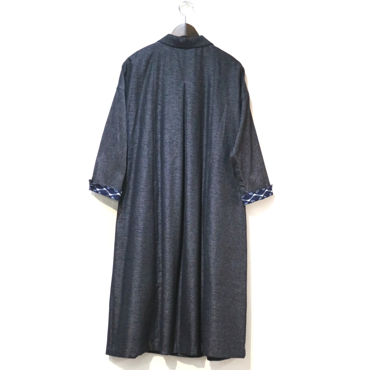 木綿の花 [ピンタック ワンピースコート 無地 グレー] 久留米かすり 袖口2way仕立て※柄部分:藍染手織り久留米絣使用