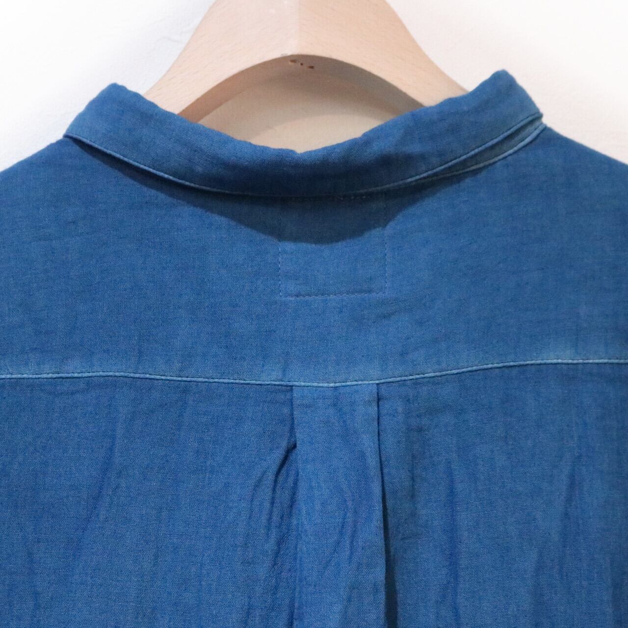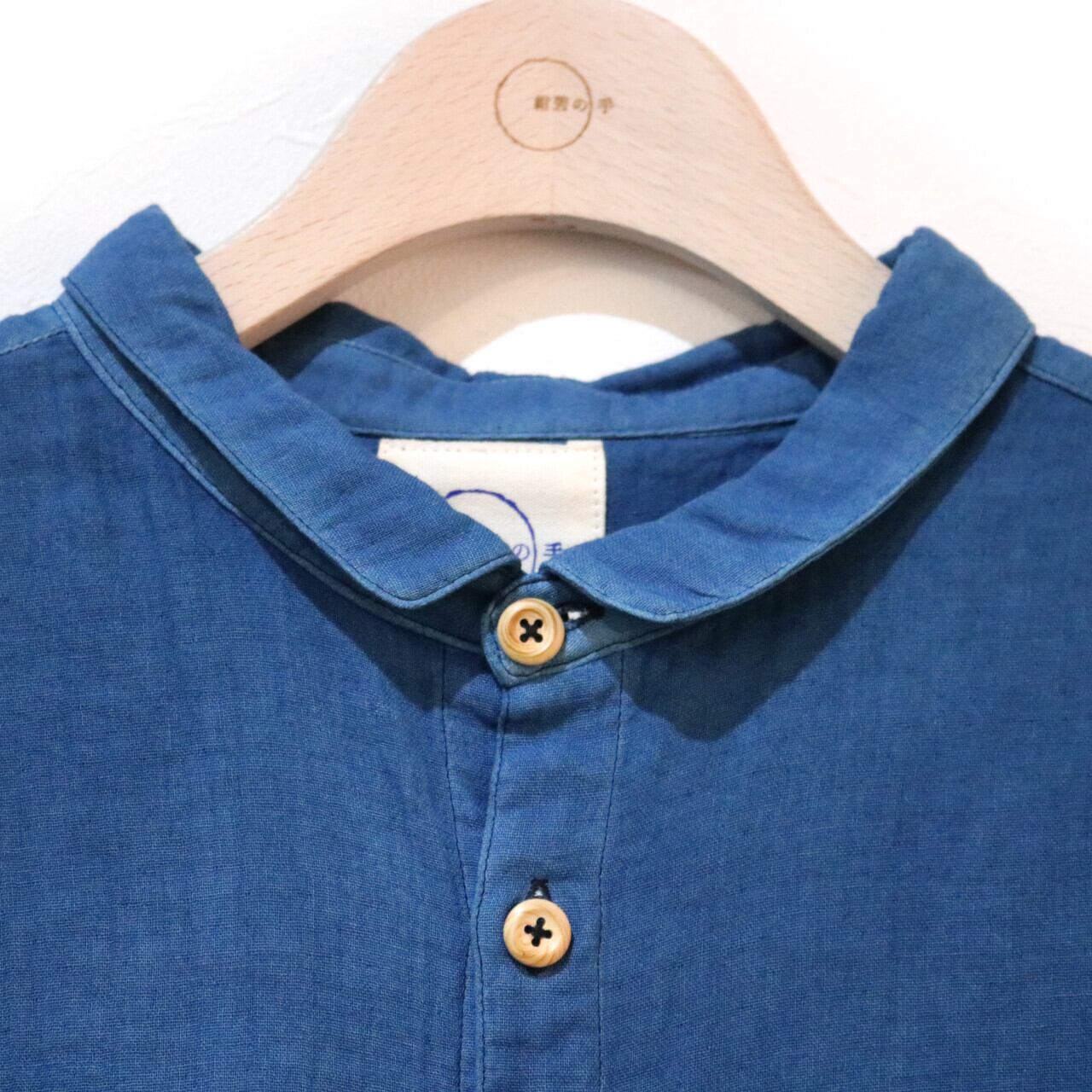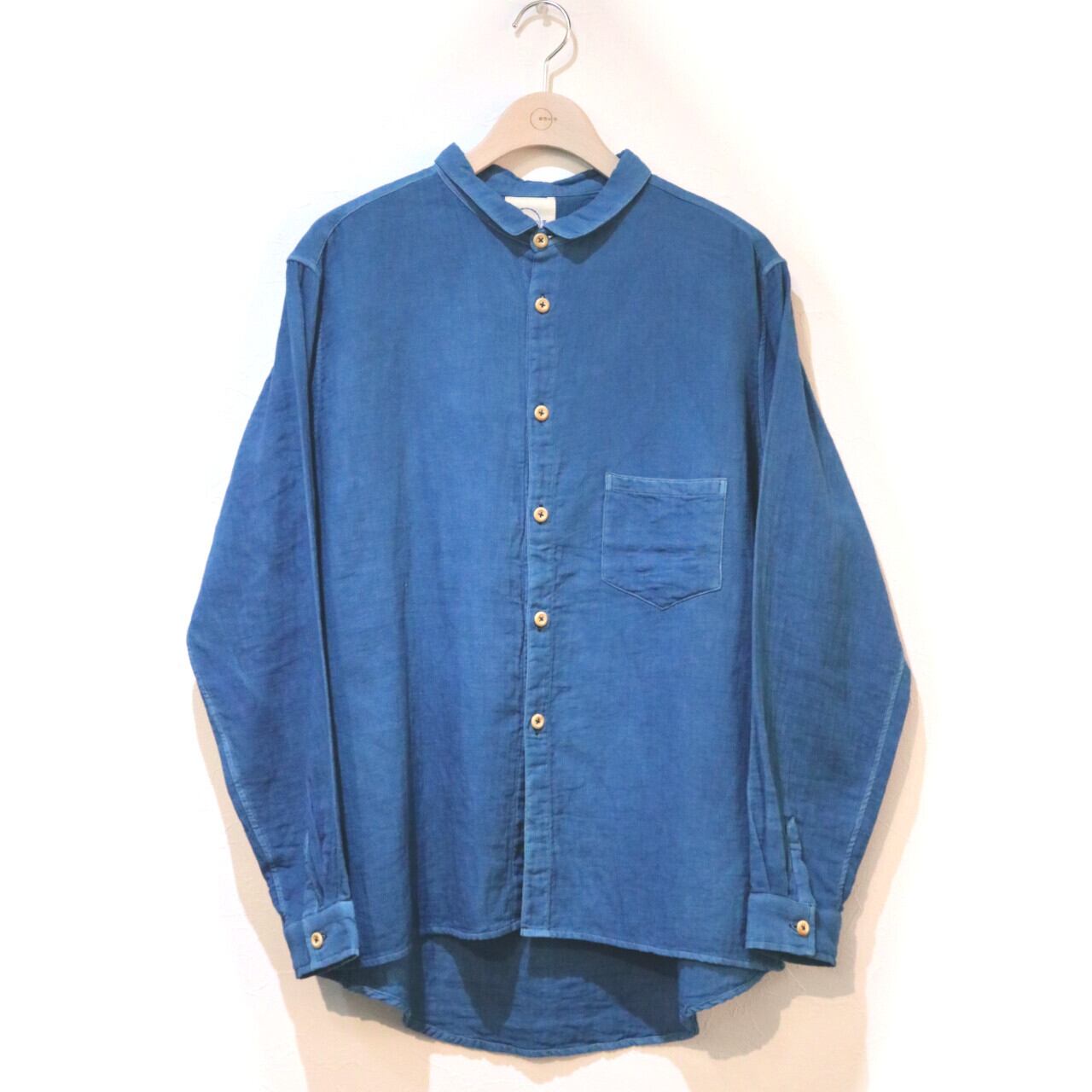 紺碧の手 [藍染ガーゼシャツ 丸襟] 天然藍染×国産ガーゼ Lサイズのみ ※職人手染め