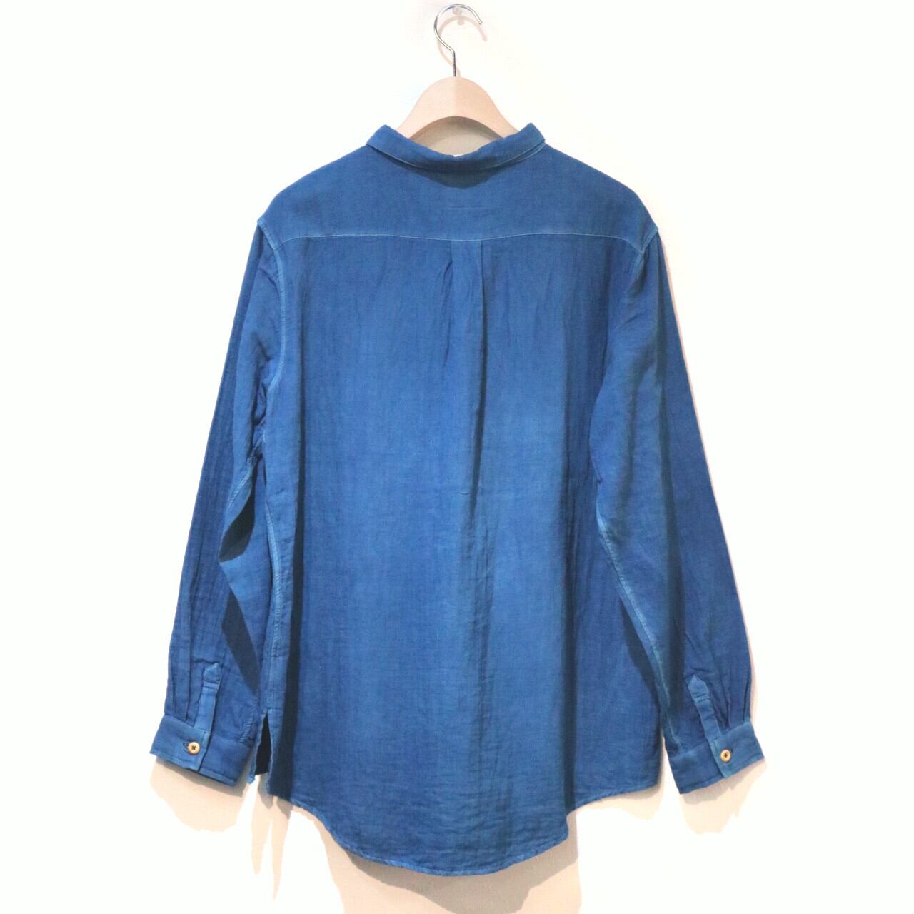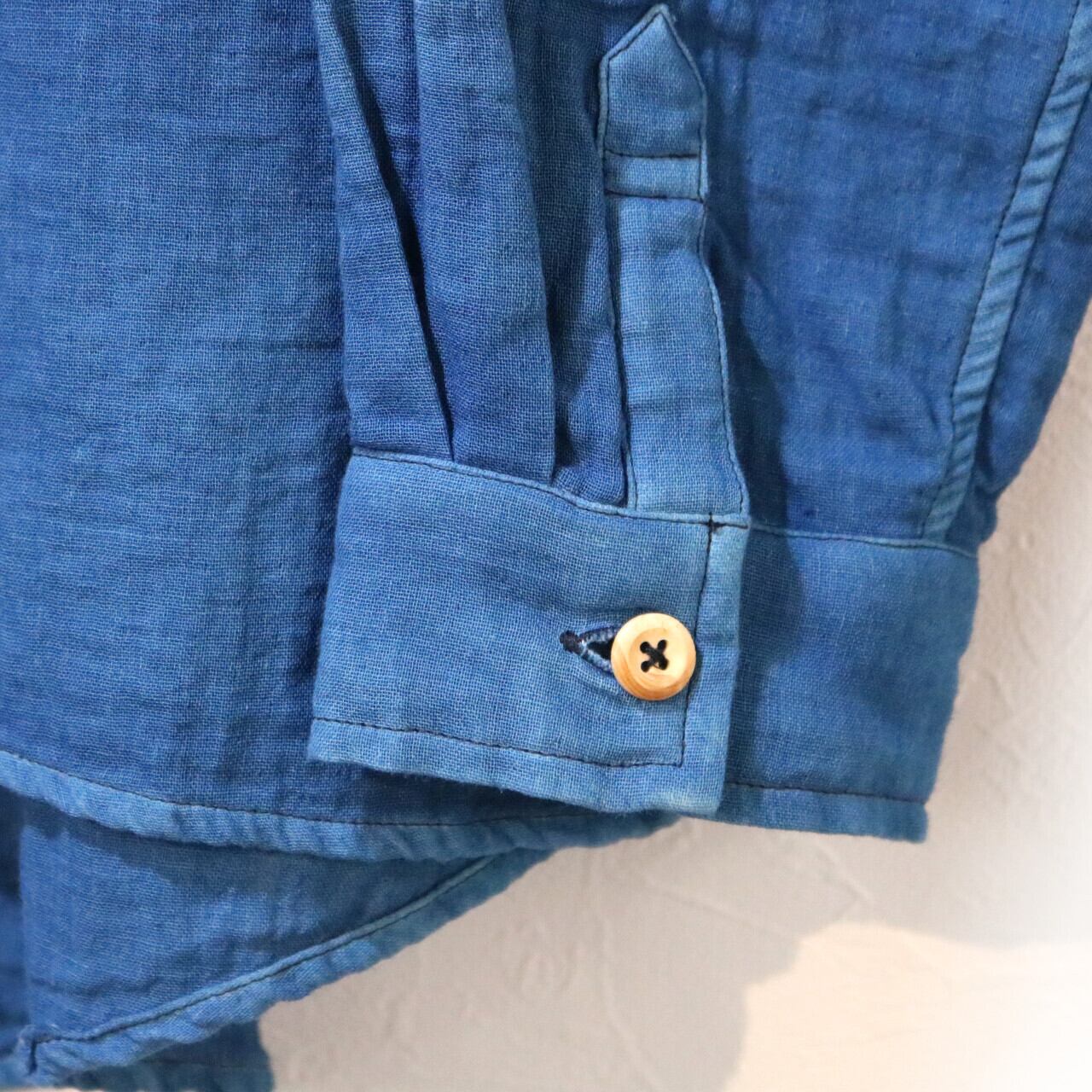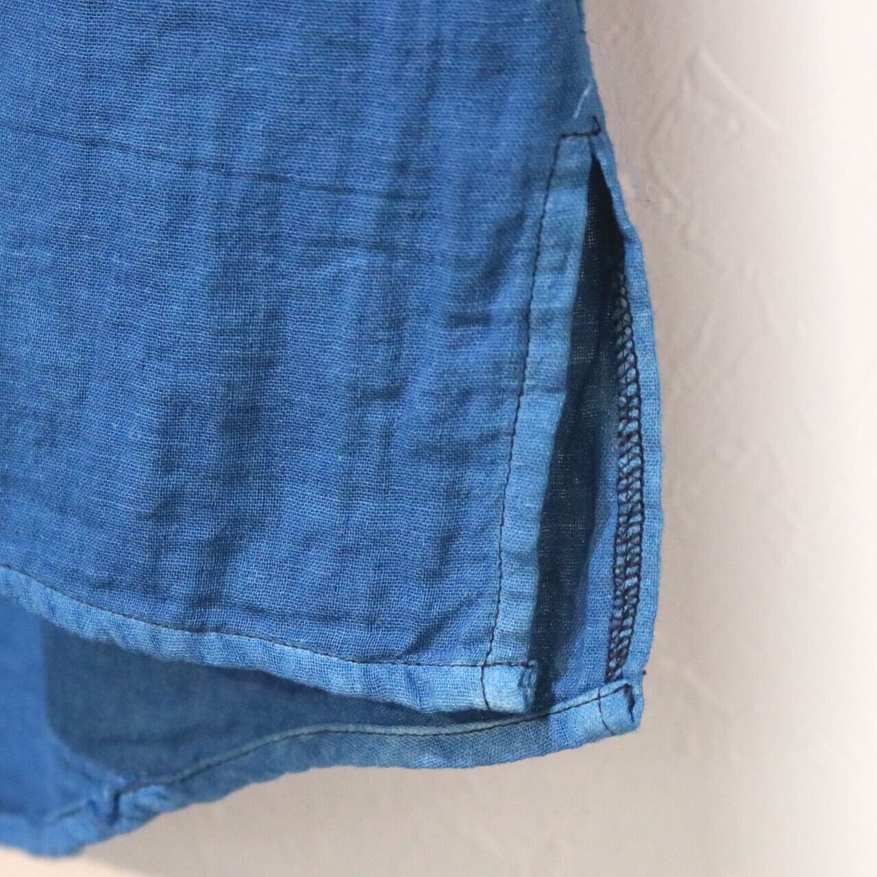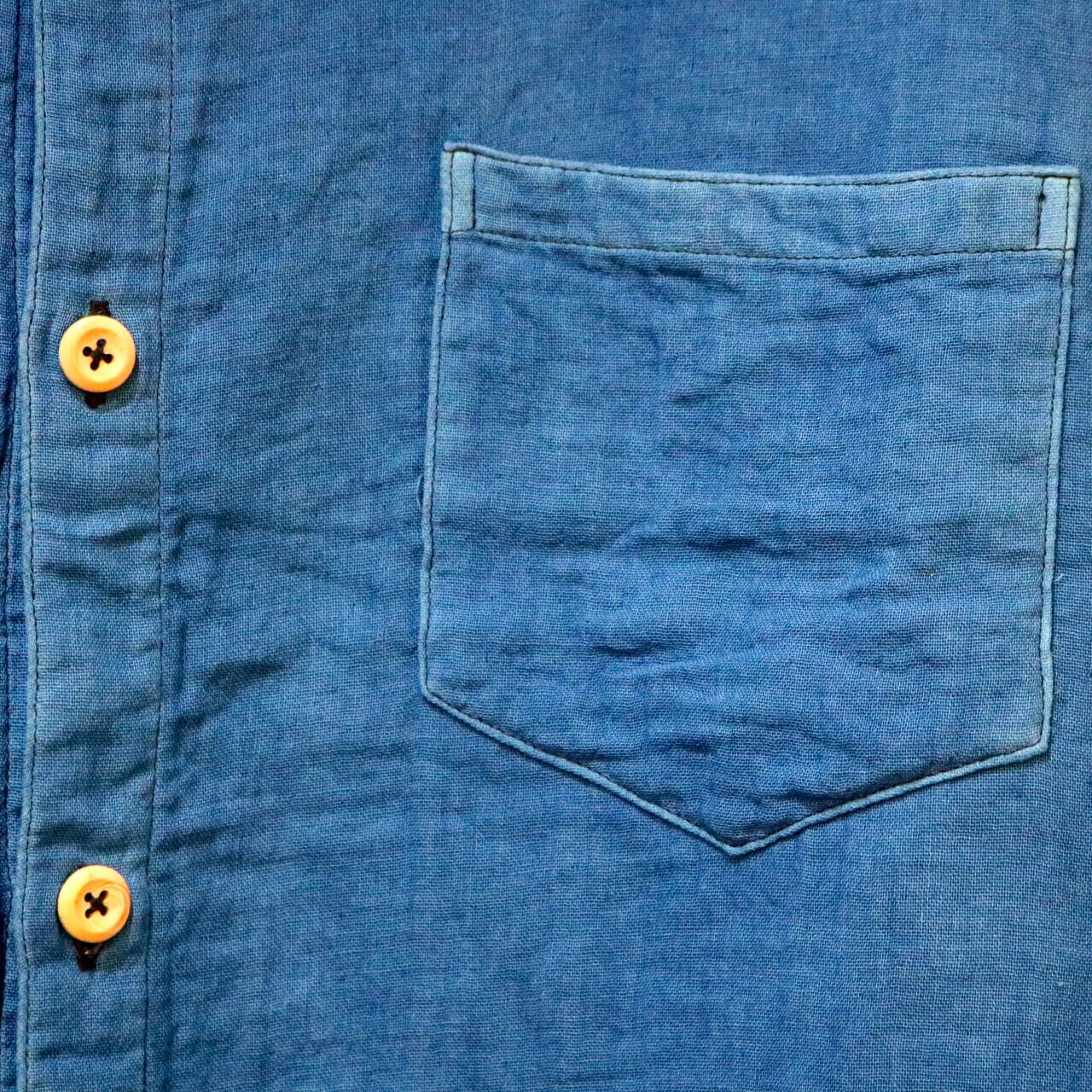 紺碧の手 [藍染ガーゼシャツ 丸襟] 天然藍染×国産ガーゼ Lサイズのみ ※職人手染め