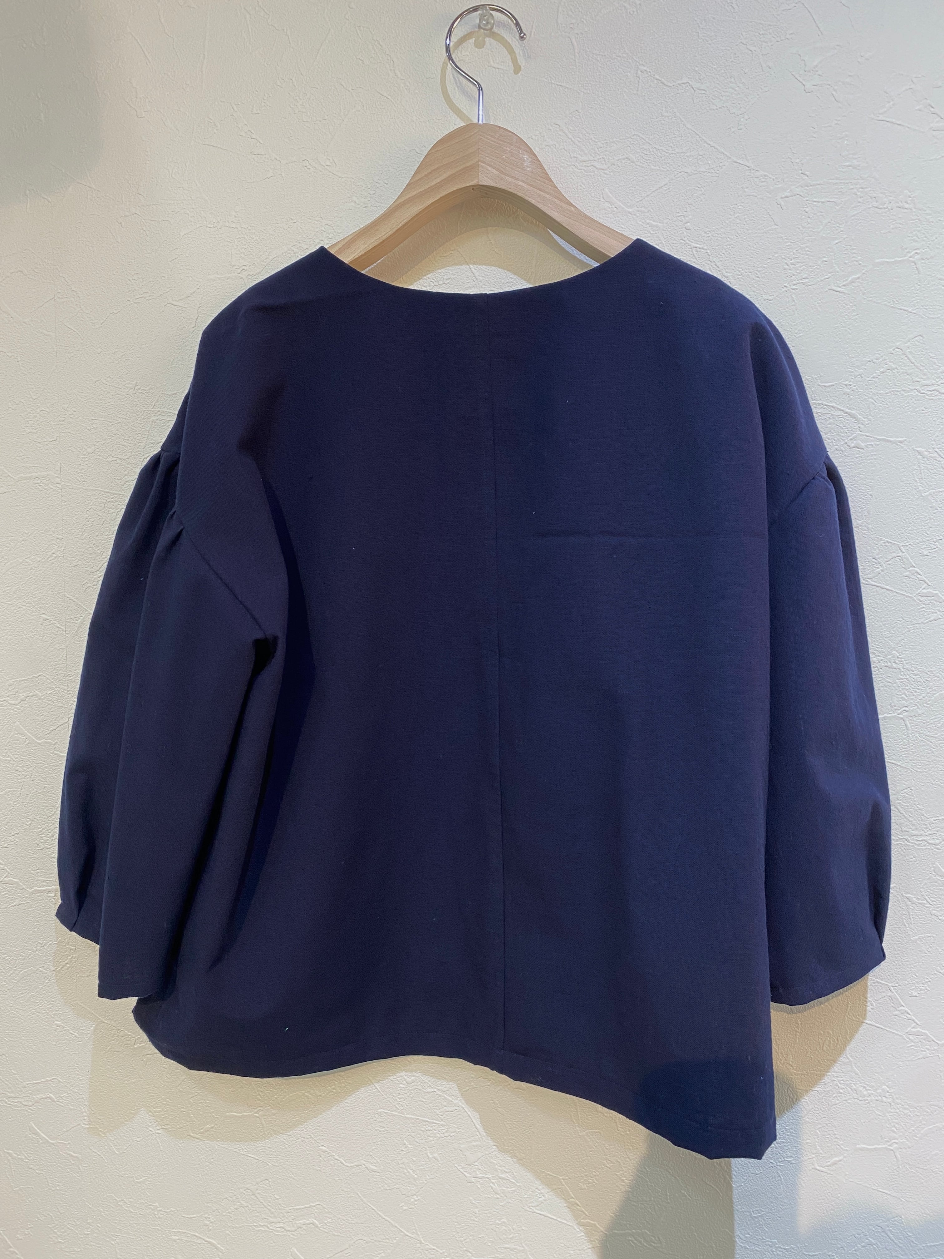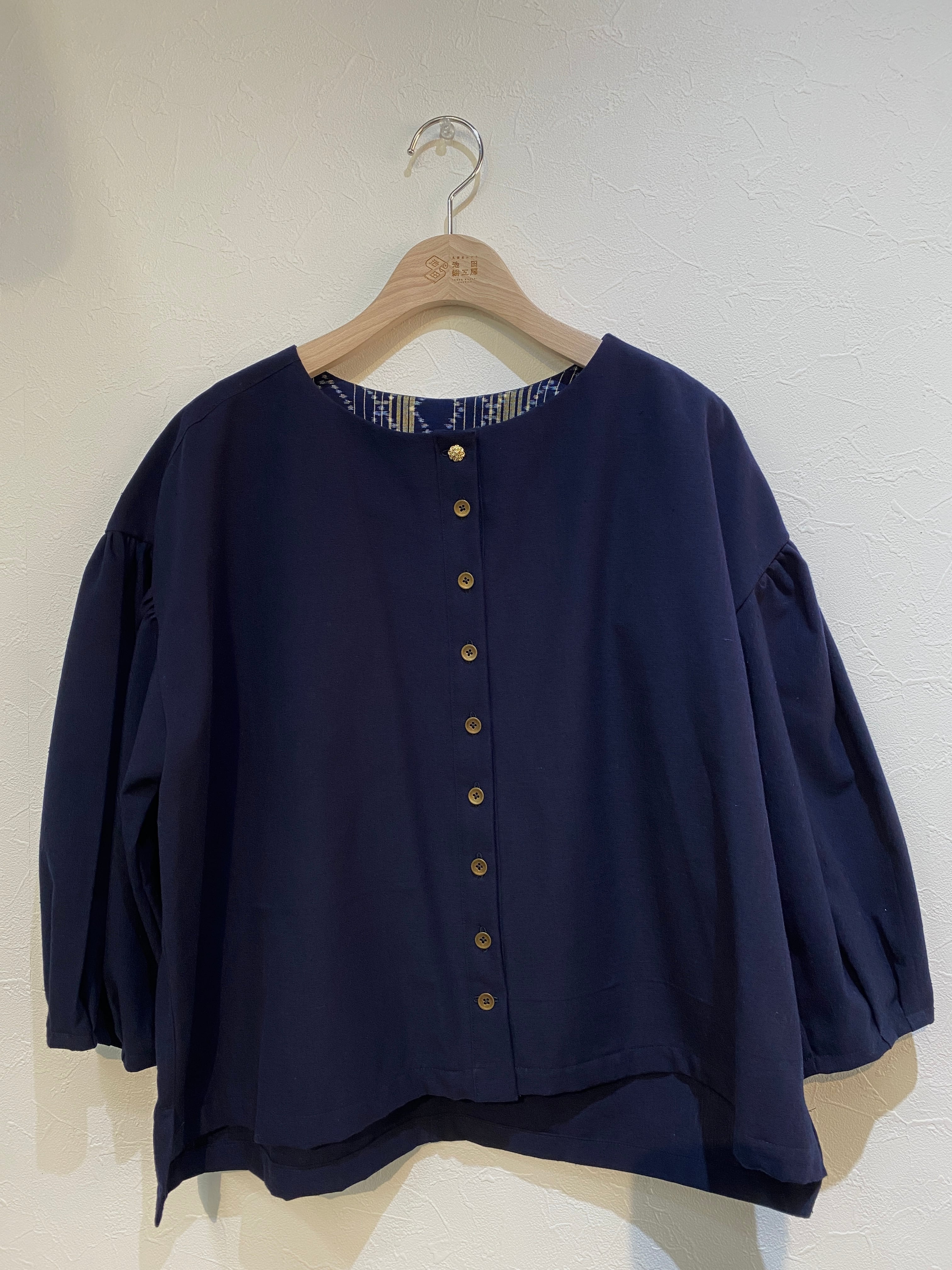 [カーディガンシャツ無地 バルーン袖] 無地絣 濃紺 久留米絣使用 池田絣工房