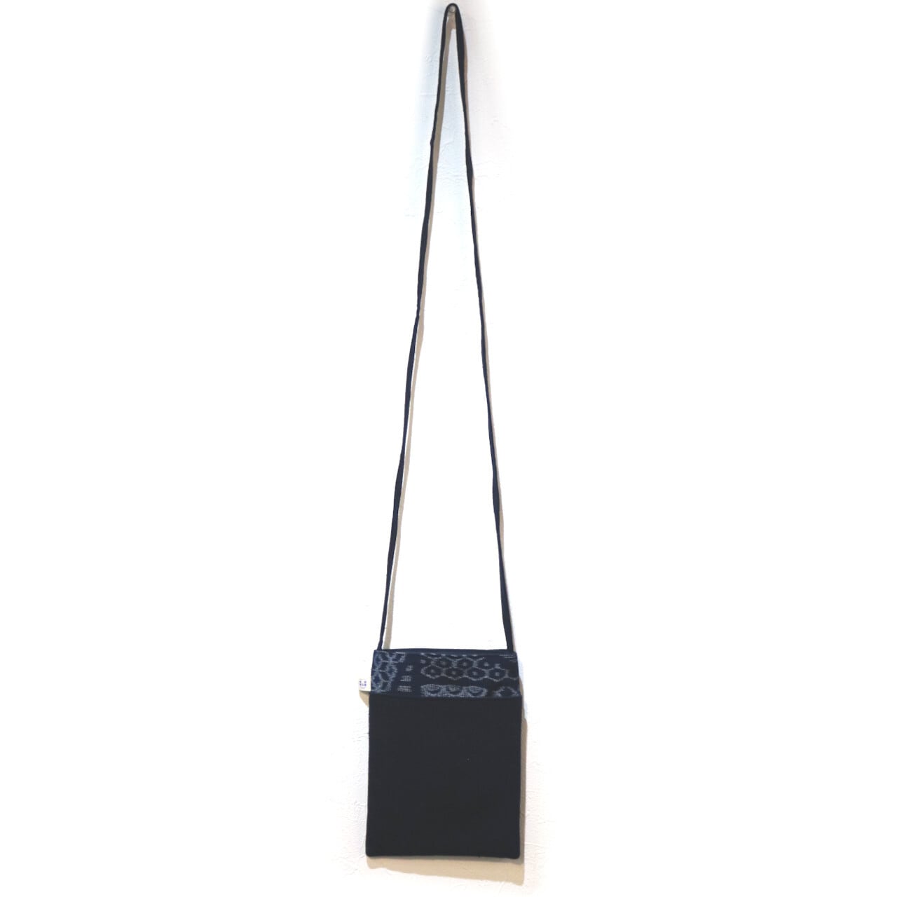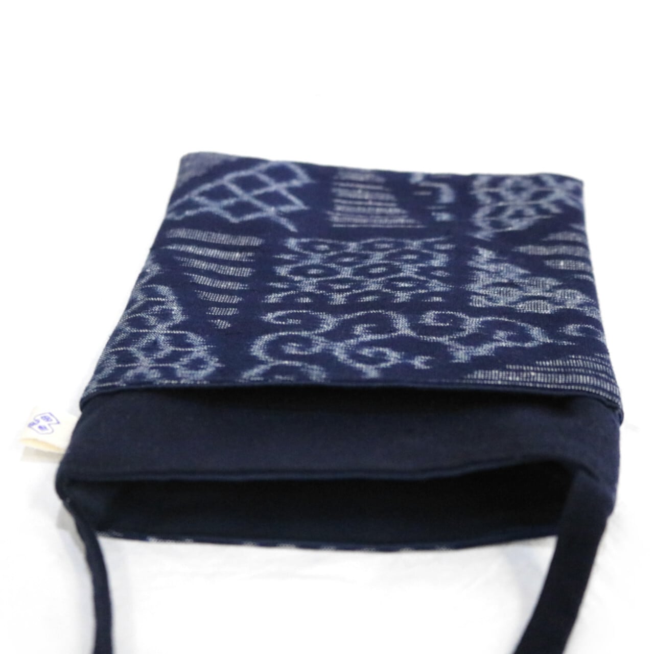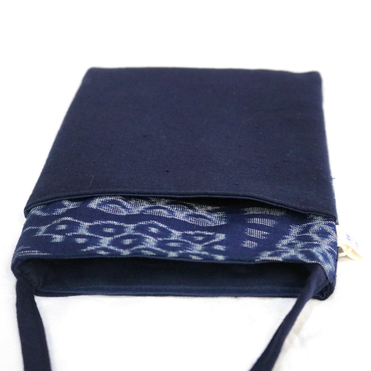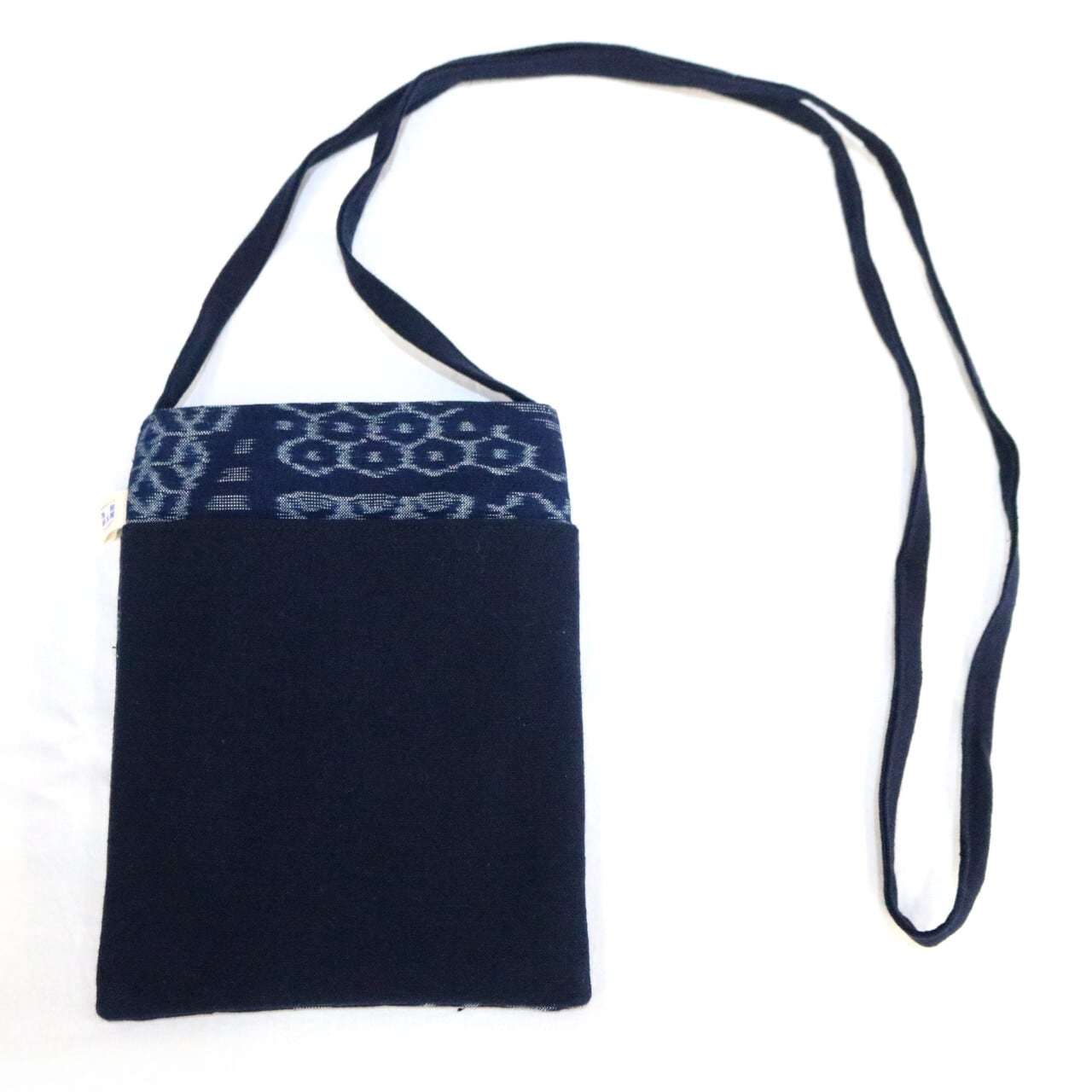 [3ポケット サコッシュ※普通サイズ] 久留米絣 花散るステンドグラス柄×無地 紺 池田絣工房 ショルダーバック