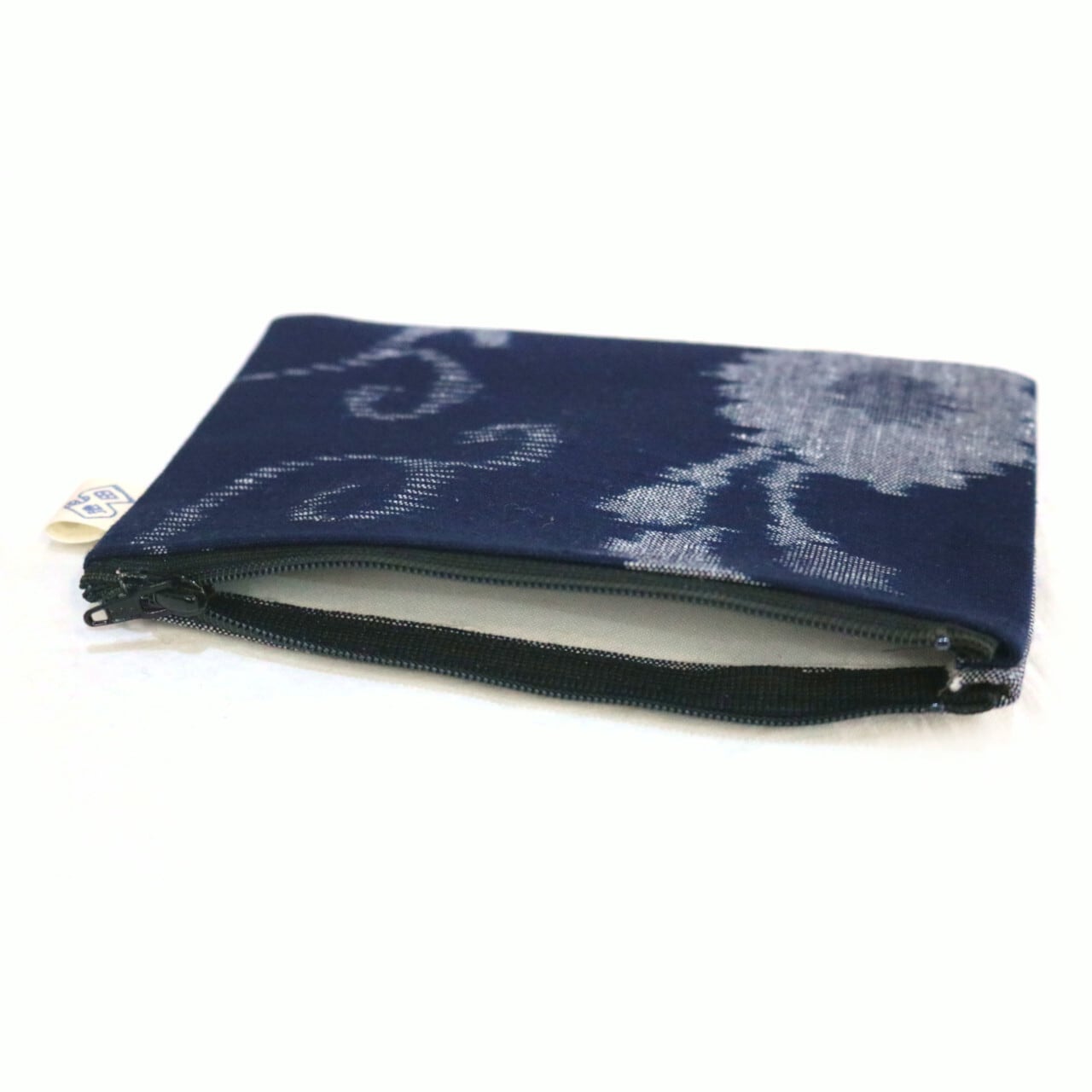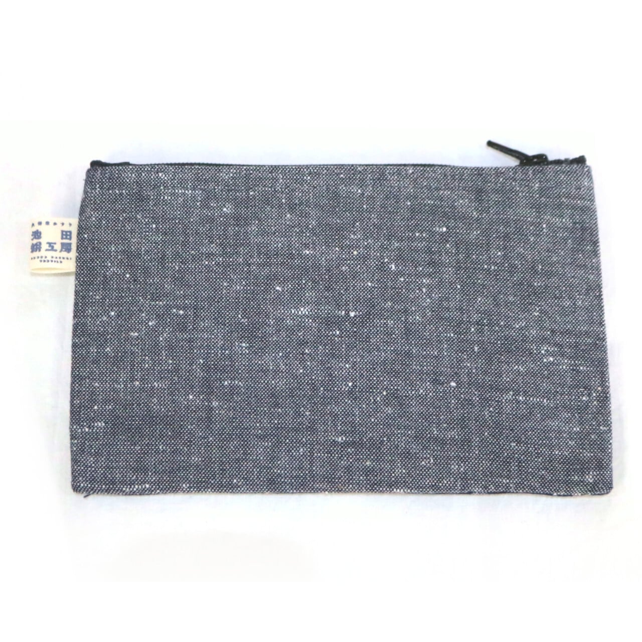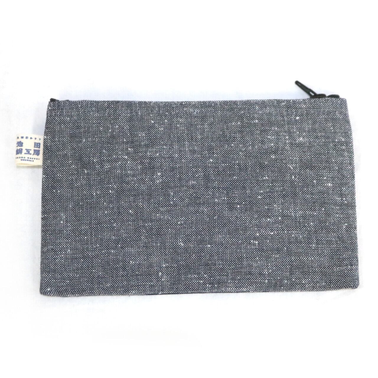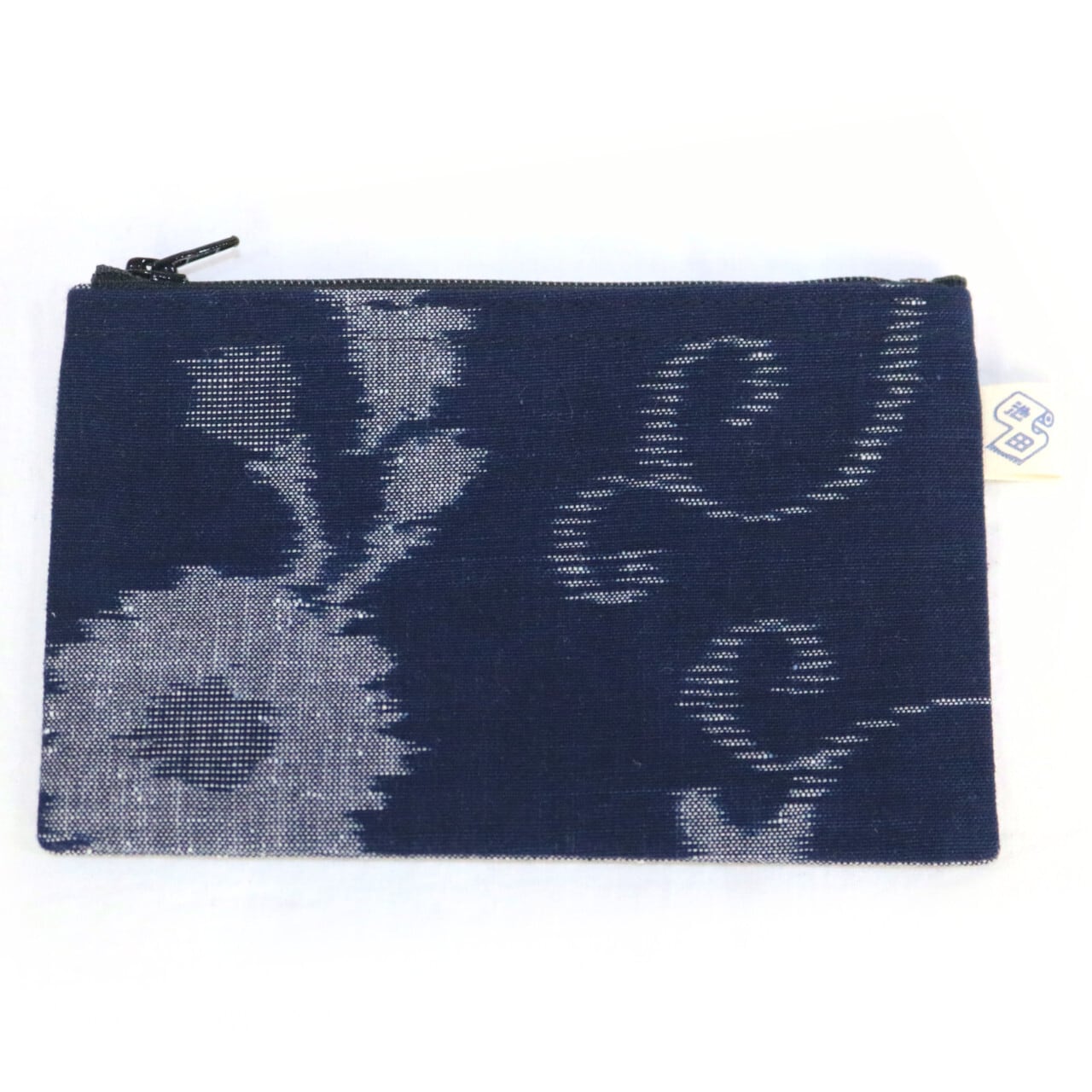[かすりスクエアポーチ ※裏面 無地グレー] 久留米絣 藍染手織り 全2柄 池田絣工房 ファスナー付