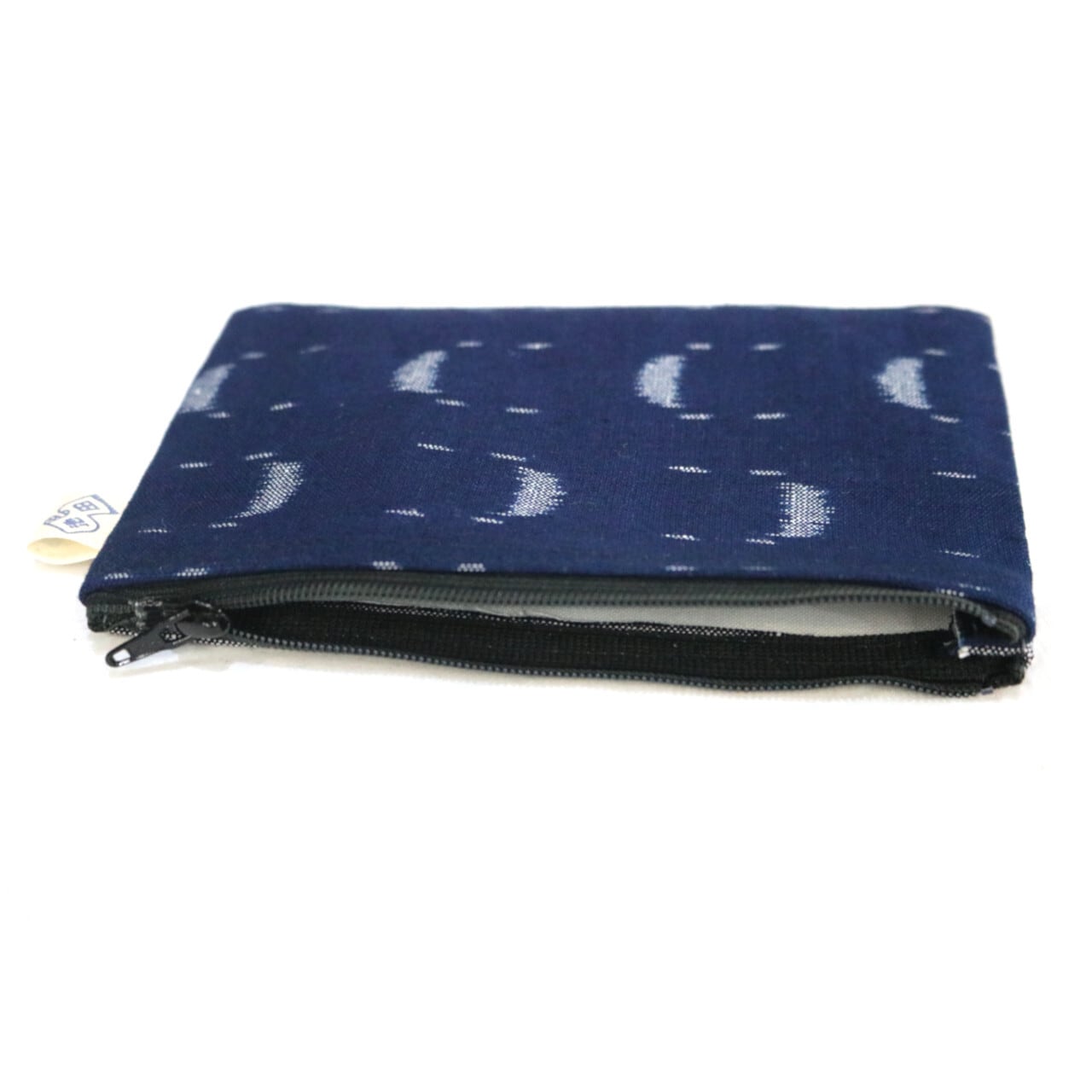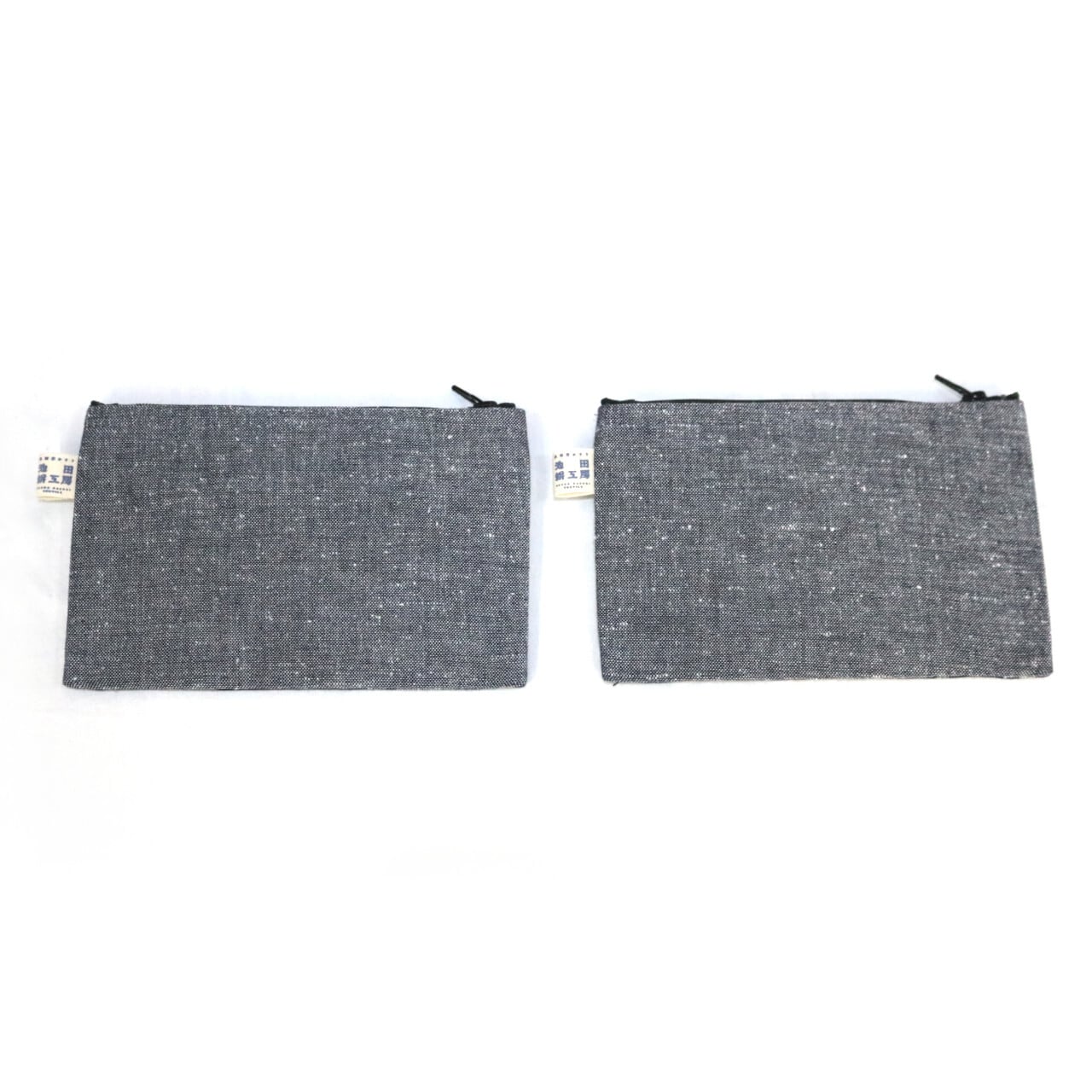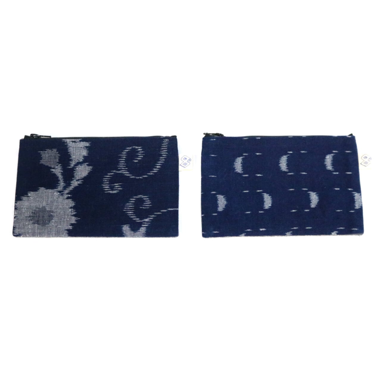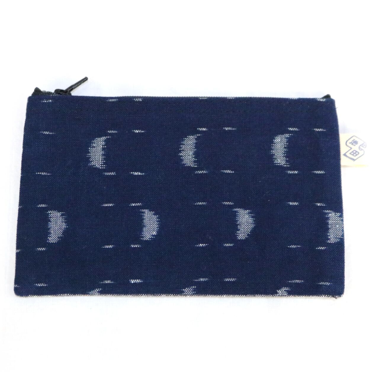 [かすりスクエアポーチ ※裏面 無地グレー] 久留米絣 藍染手織り 全2柄 池田絣工房 ファスナー付