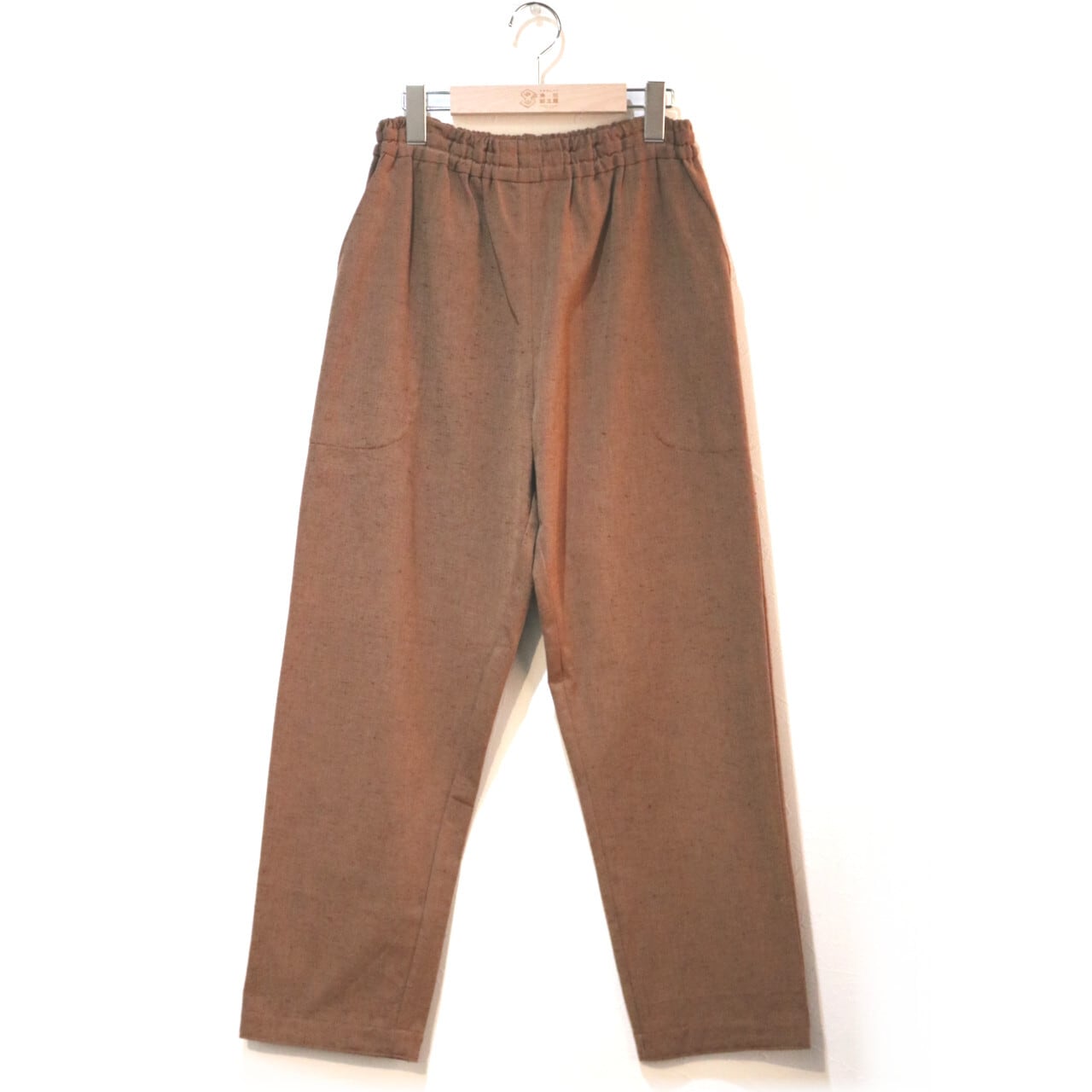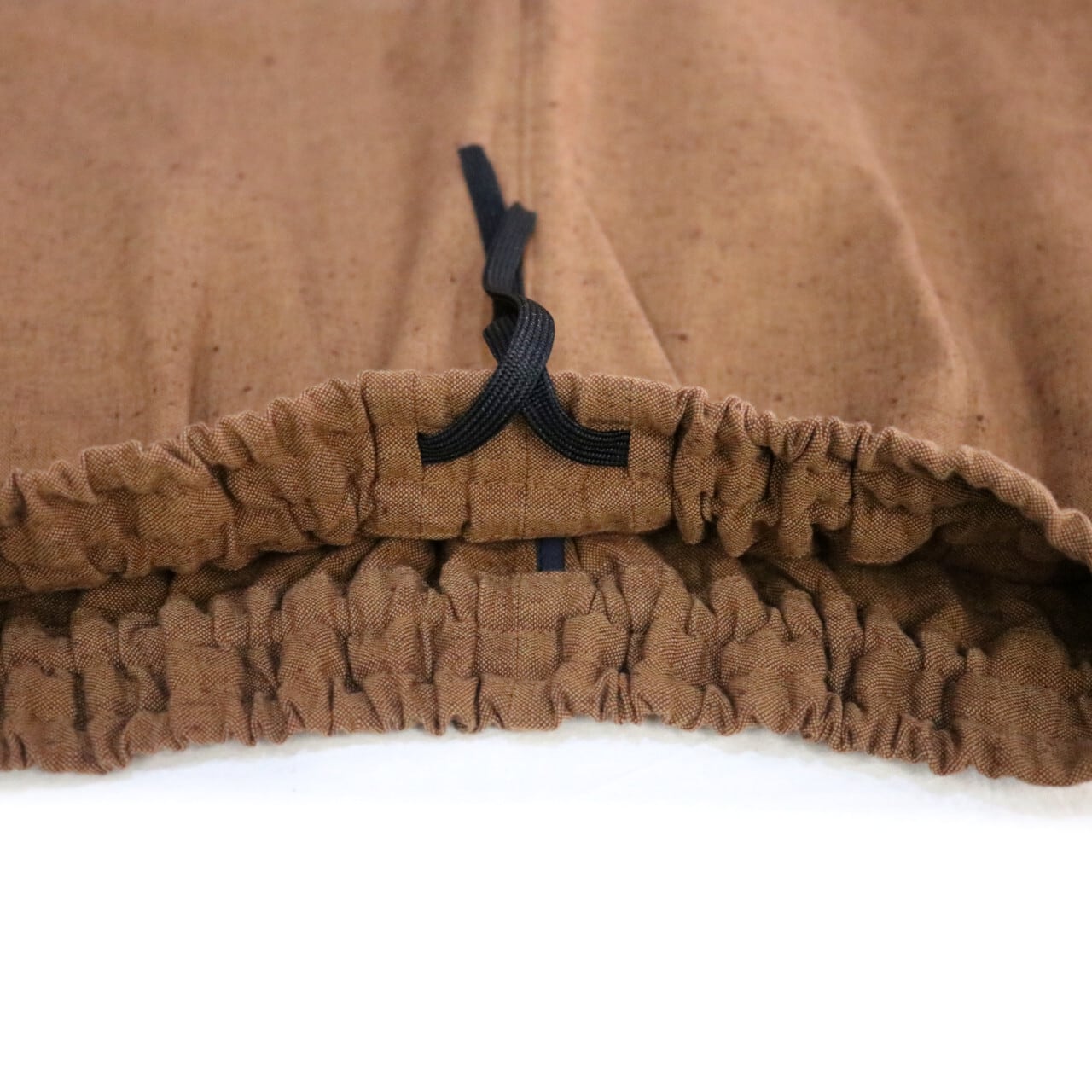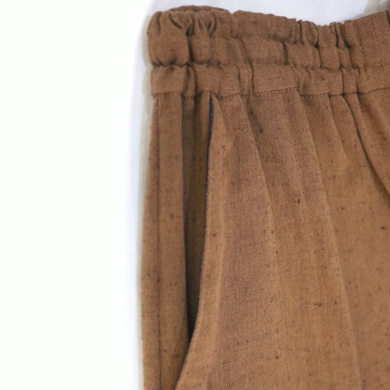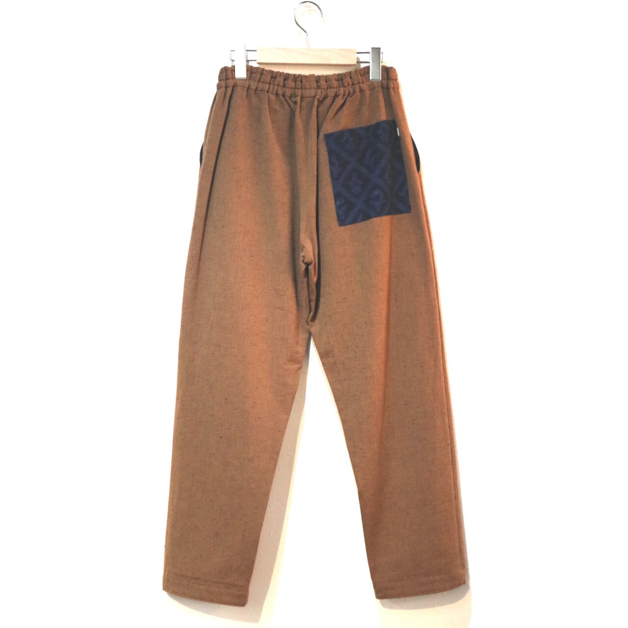 [かすり無地ズボン] 絣無地 ブラウン×蒼の花小路柄 もんぺ風パンツ ※柄部分:藍染手織り久留米絣使用 池田絣工房