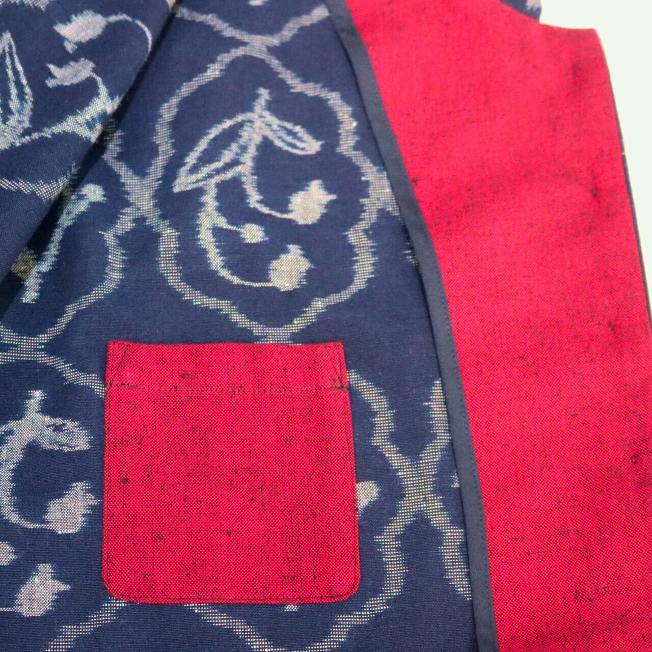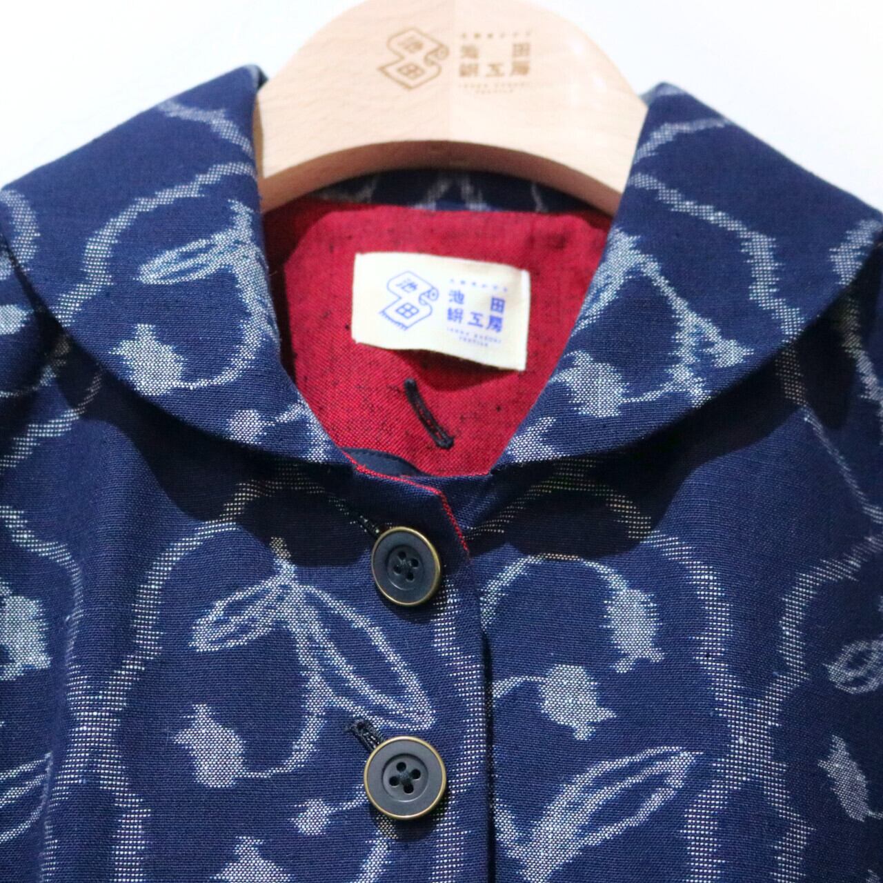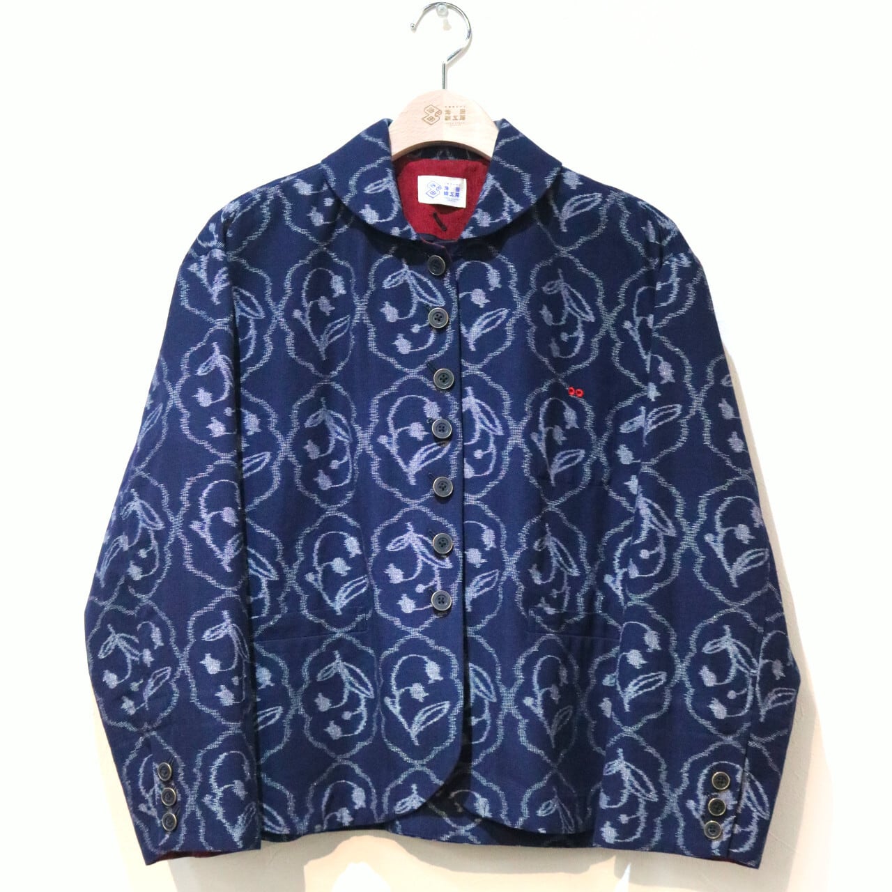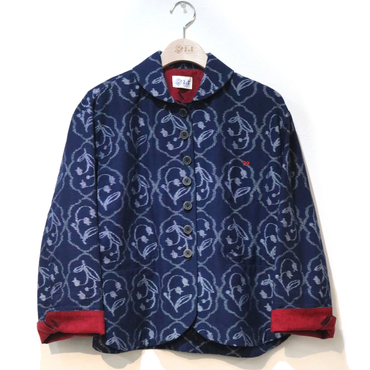 [まるまるジャケット 絵絣] 鈴蘭柄 濃紺 総手織り 久留米絣使用 池田絣工房