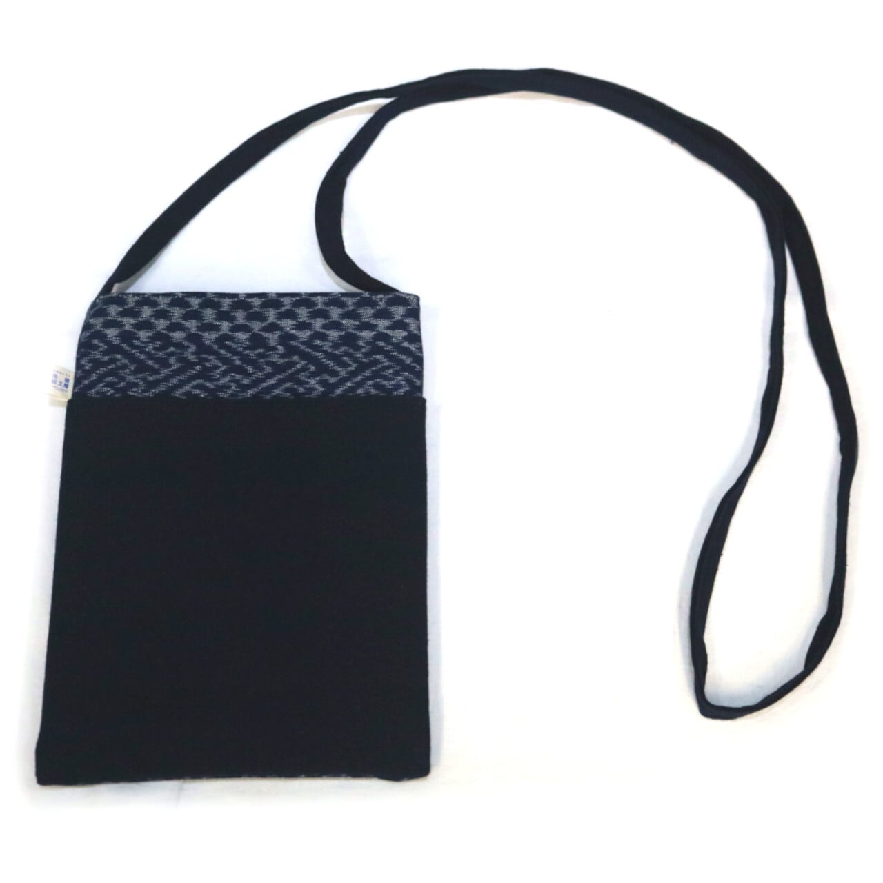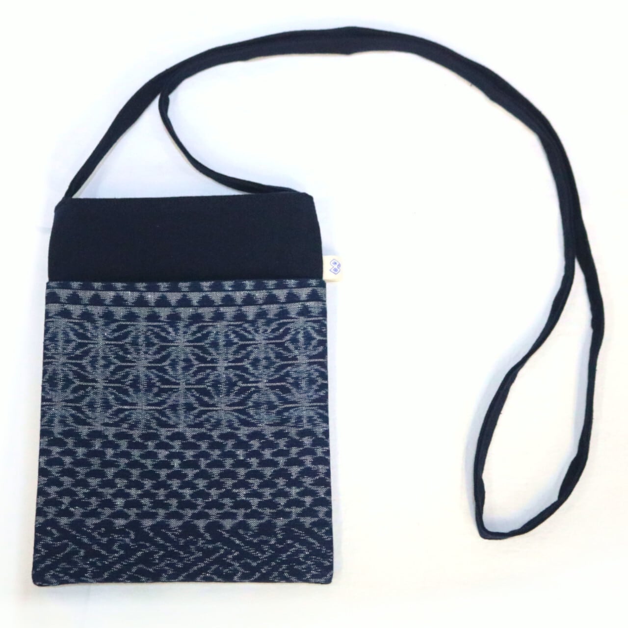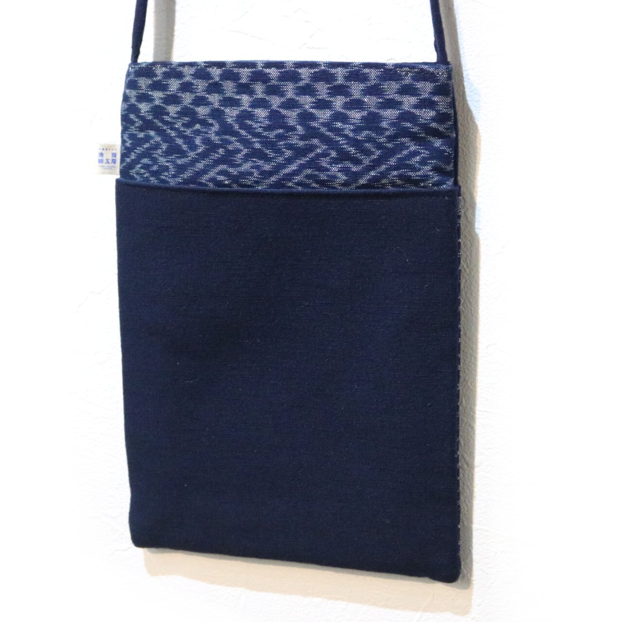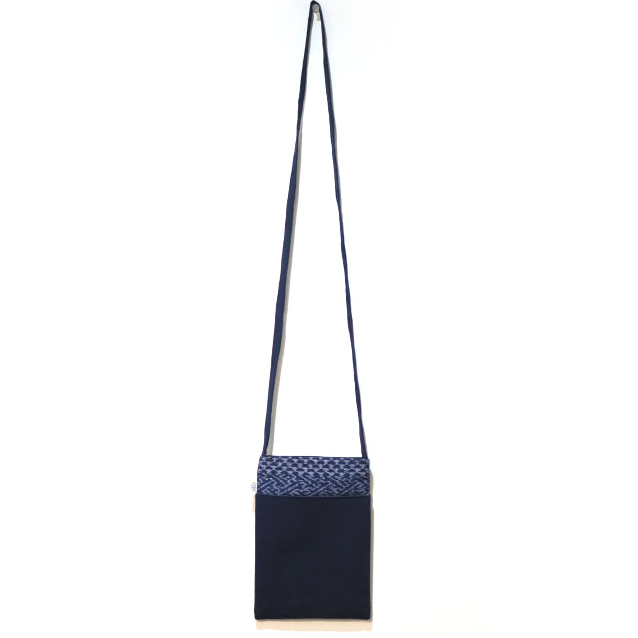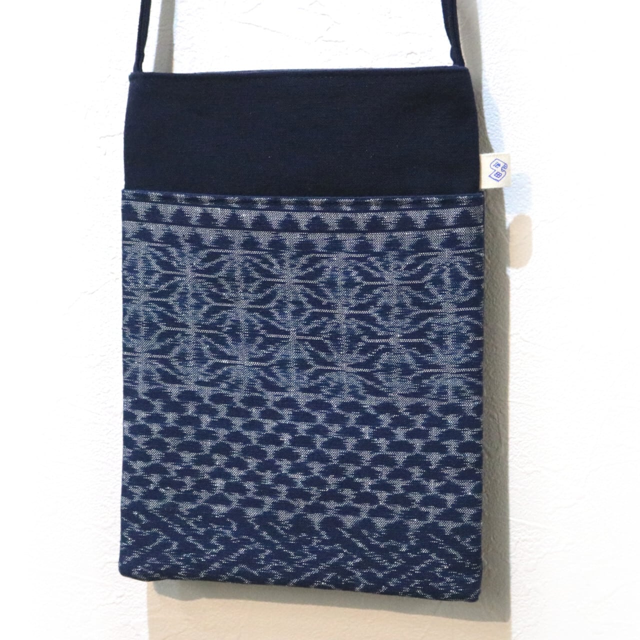 [3ポケット サコッシュ※大きめサイズ] 久留米絣 四段柄×無地 紺 池田絣工房 ショルダーバック